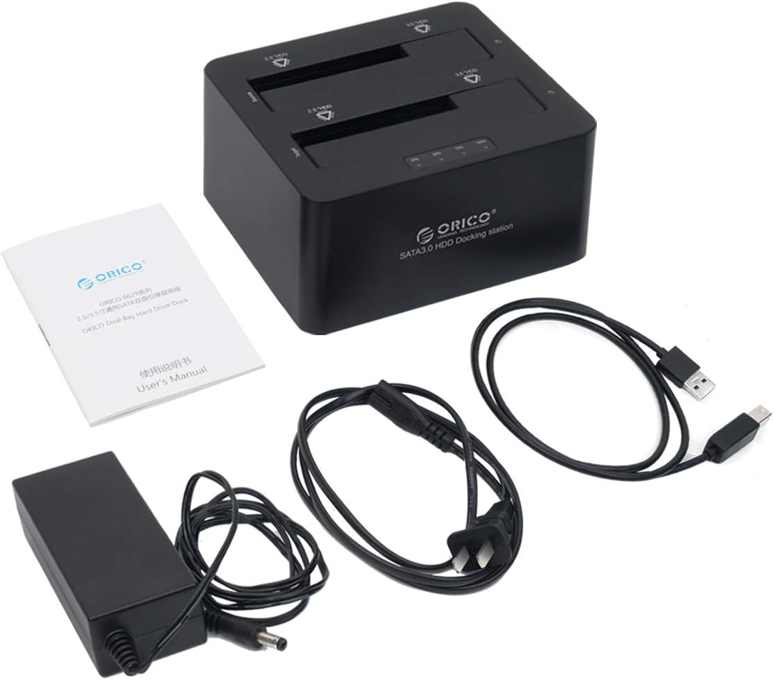 ORICO Dual Bay Hard Drive Docking Station USB 3.0 to SATA with Offline Clone Function Hard Drive Duplicator for 2.5″ 3.5″ SSD HDD [UASP Protocol and 2 x 12TB Supported]- 6629US3