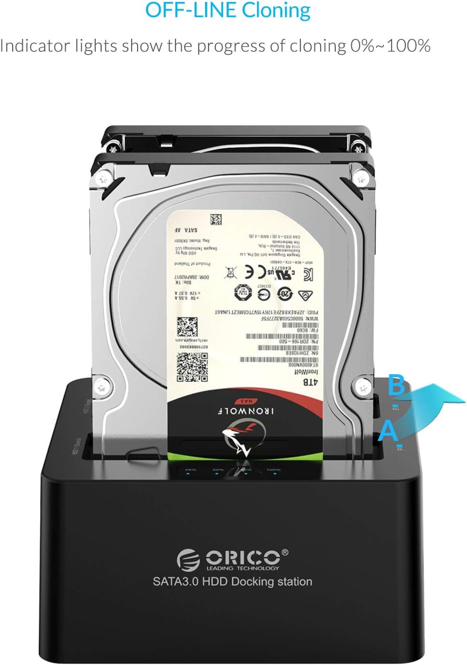 • Intuitive LED Lighting System : The LED indicator is blue after powered on,The light will turn Blue and Red flash when it is reading and writing data. Four blue LED lights clearly track your data’s progress during offline cloning from 25% to 50%, 75% and finally 100%.