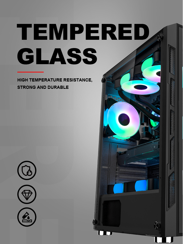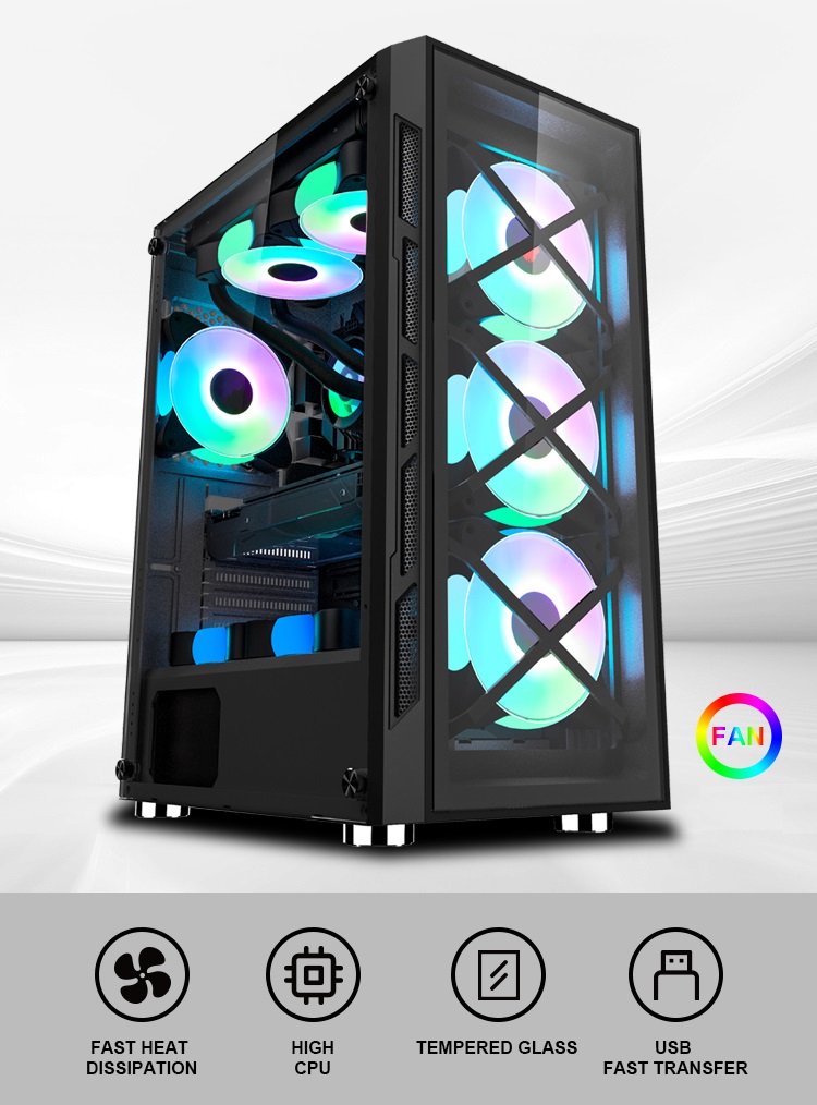 EL-BOMBA SX-C2103 FOUR BUILT-IN RGB FANS | Mid Tower Gaming Case with Tempered Glass Panels , PC Gaming Case Computer Chassis Supports E-ATX, ATX | Black