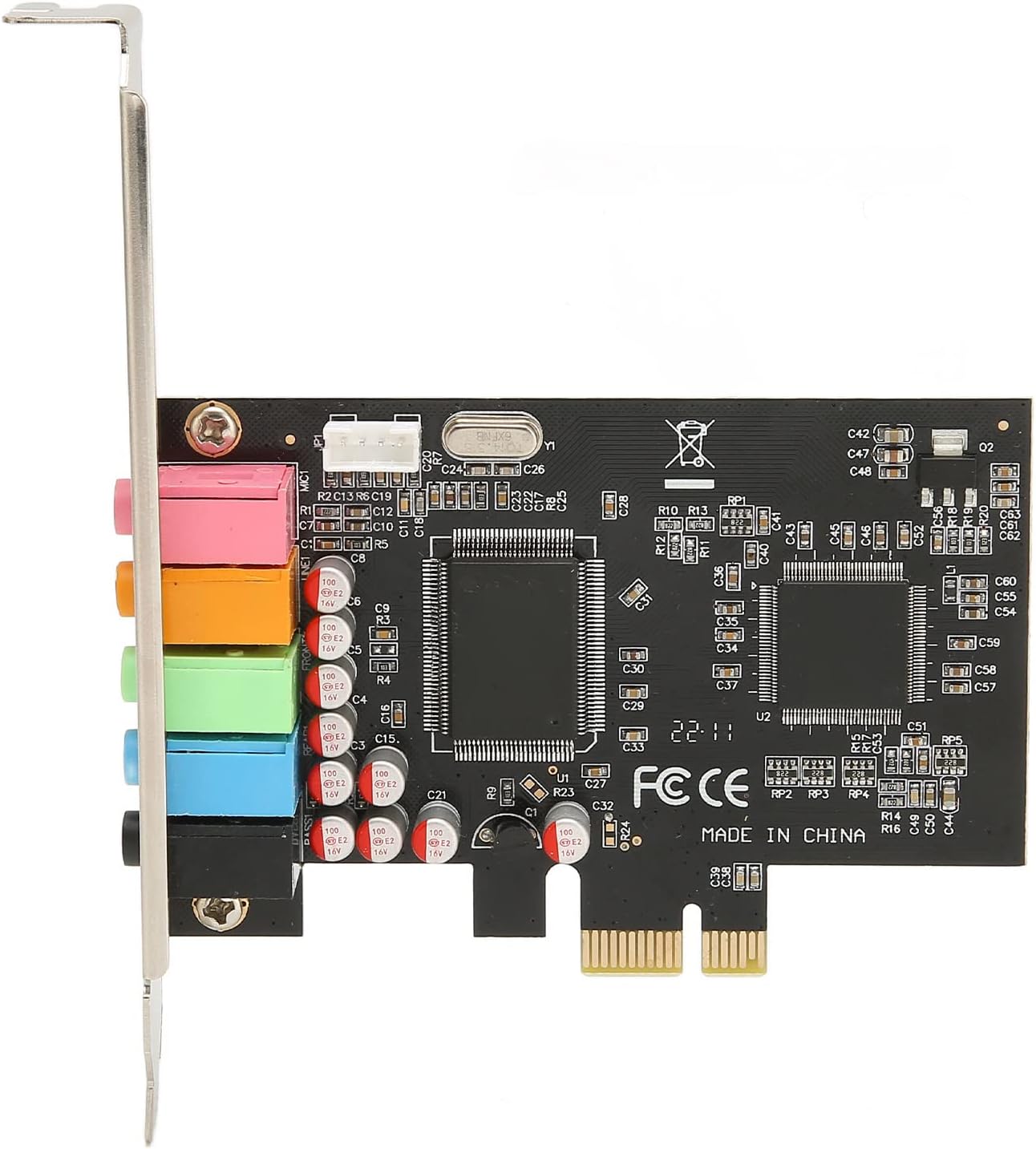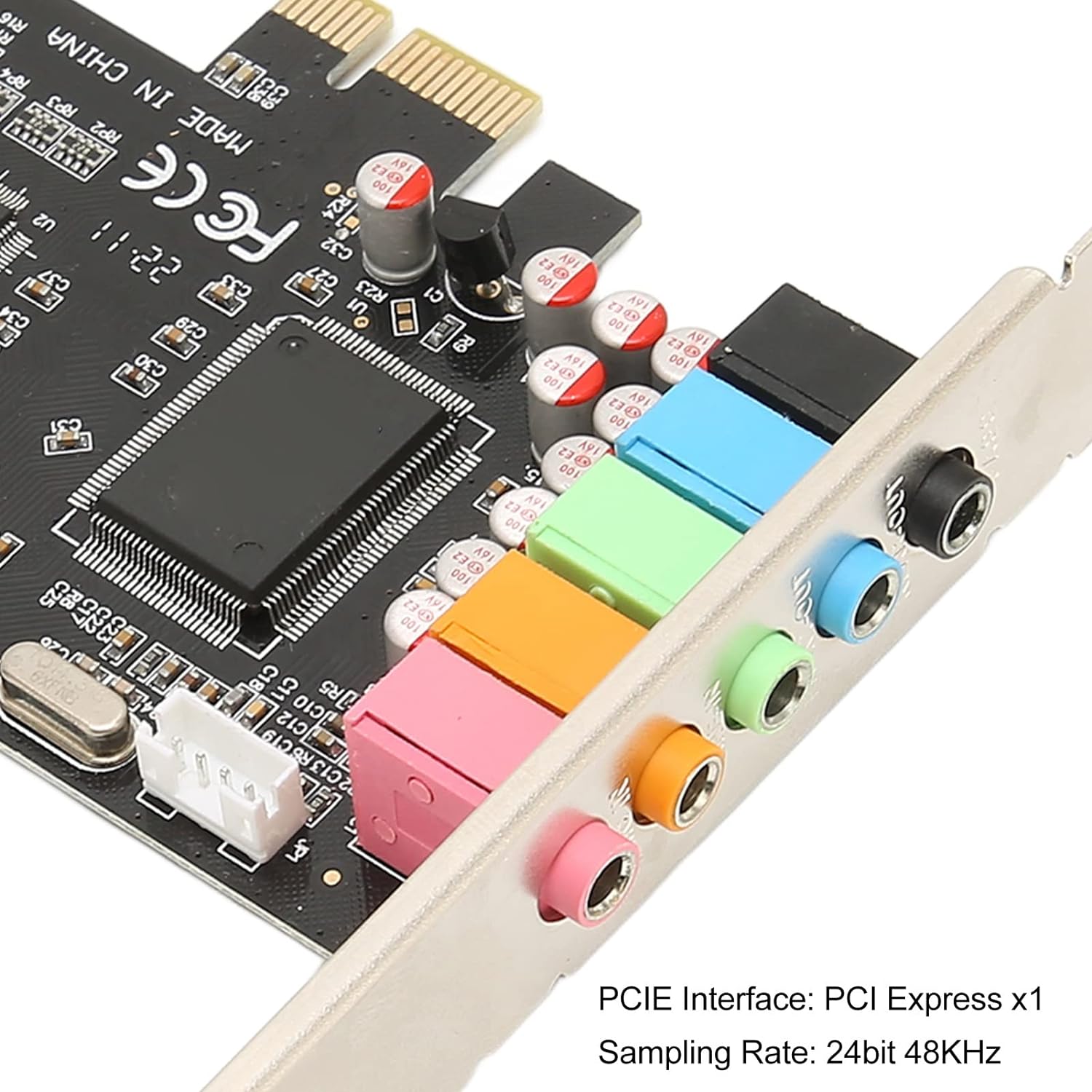PCIE 5.1 Sound Card, Multi Channel Sound Chip Supports 6 Channel Surround Sound, 24Bit 48KHz PC Internal Sound Card, with PCI Express Port Suitable for Home Theater Large 3D Games Listening to Music |SPC092