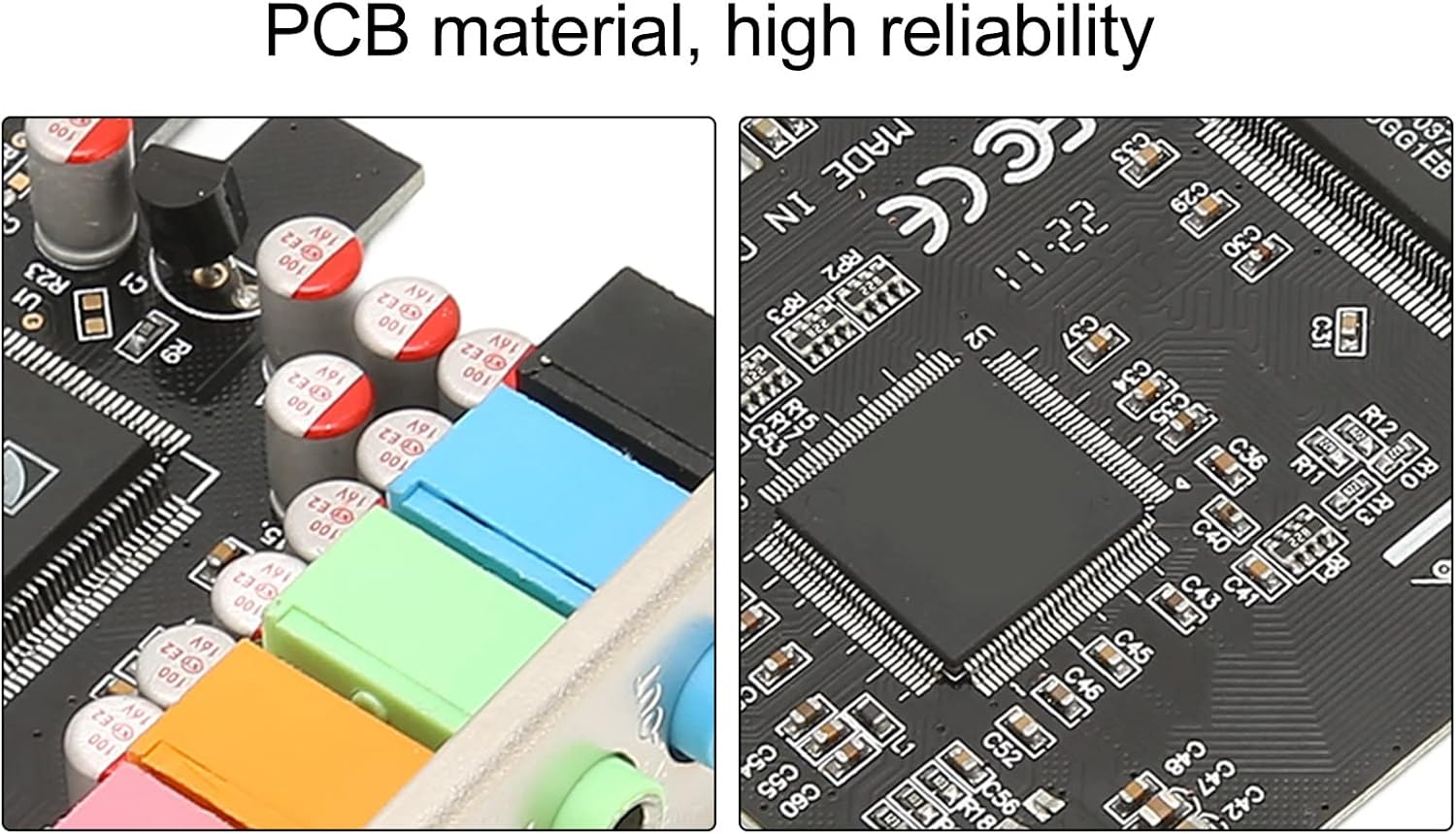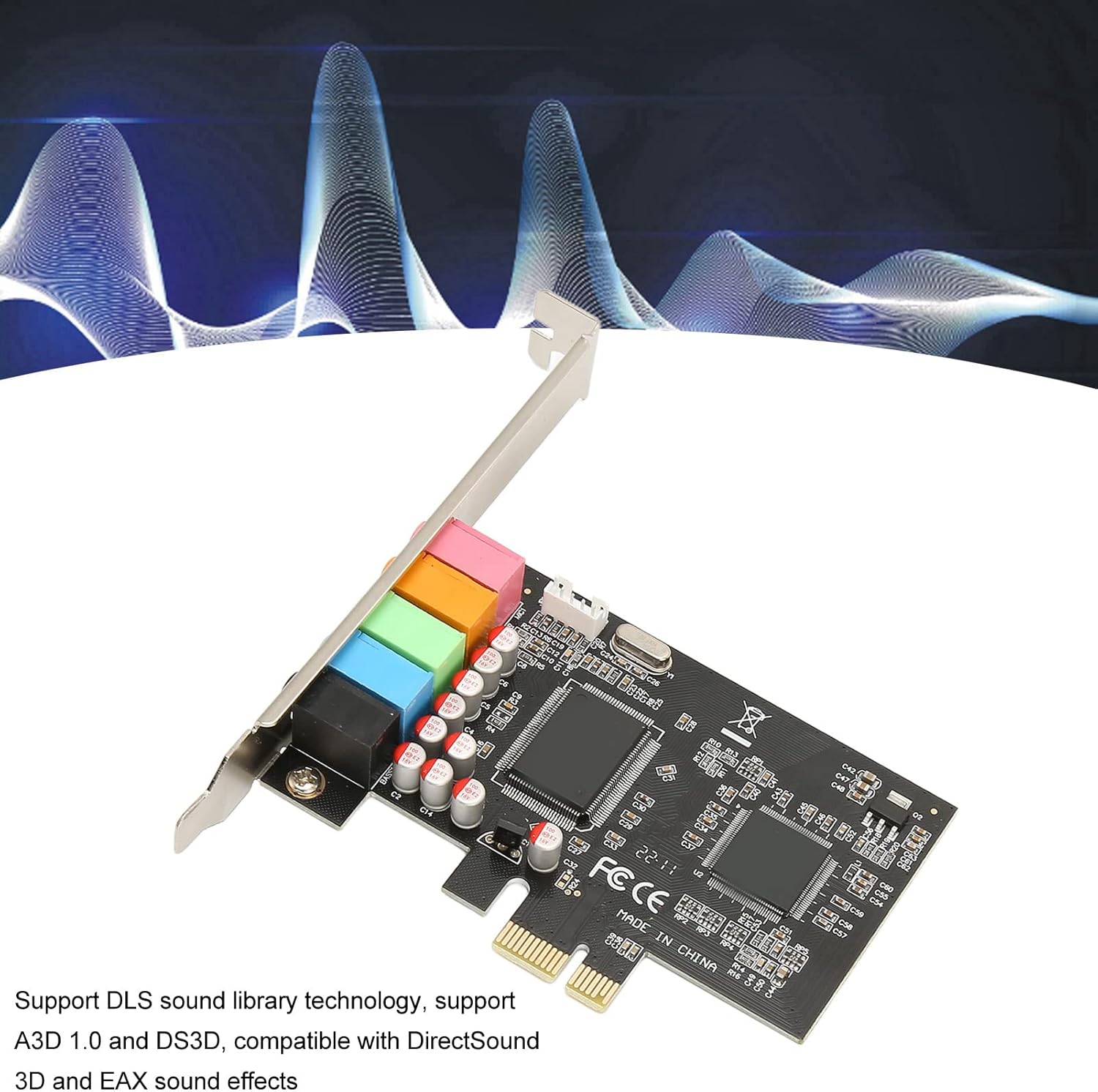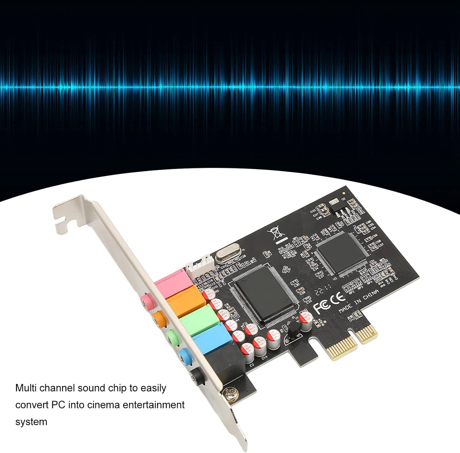 - 6 CHANNEL SURROUND SOUND: The PCI E sound card adopts PCI Express bus slot and supports 6 channel surround sound output.