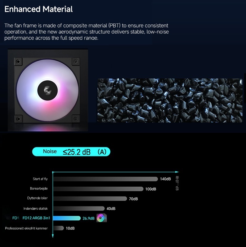 - Quality Build: Made with enhanced PBT composite material for the frame and polycarbonate for the blades, ensuring a robust and quieter fan assembly.