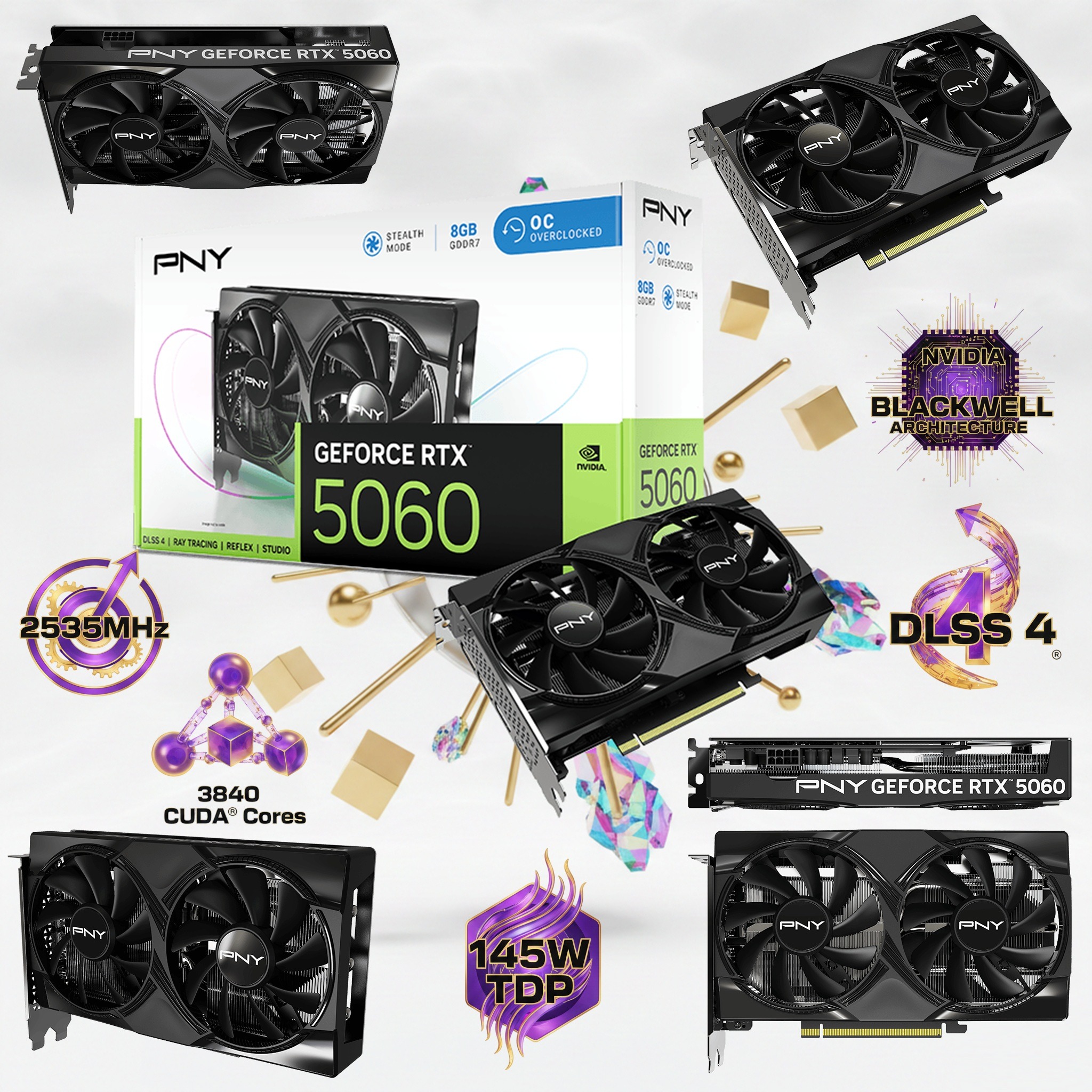 PNY GeForce RTX 5060 OC 8GB GDDR7  Dual Fan Graphics Card – NVIDIA Blackwell Architecture, DLSS 4, PCIe 5.0, 3840 CUDA® Cores , 2535MHz Boost Clock , And Compact Dual-Slot Design | STEALTH BLACK ~ VCG50608DFXPB1-O