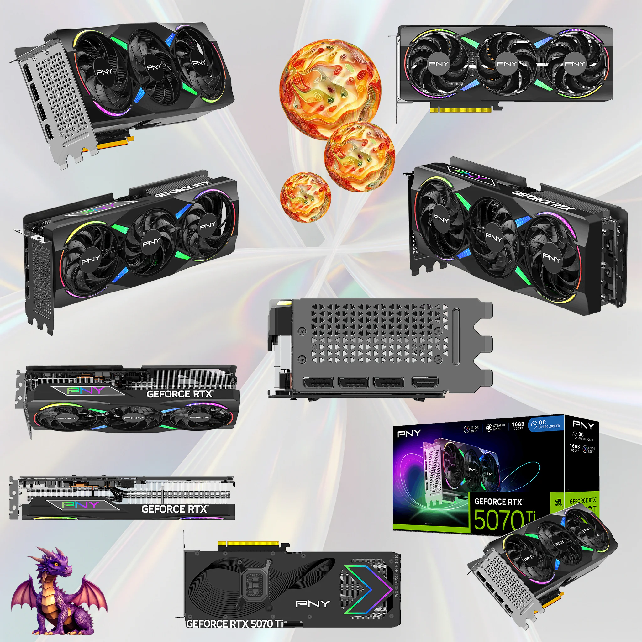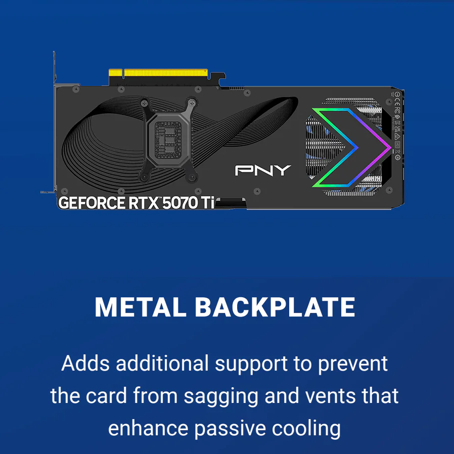 | Included in Box | PNY RTX™ 5070 Ti ARGB Overclocked Edition GPU, 1× Auxiliary Power Cable |