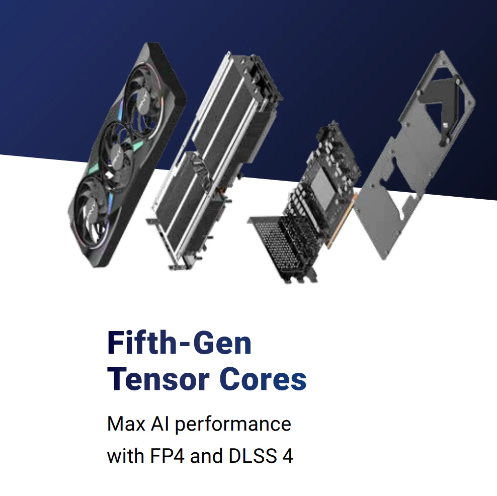 - Fifth-Gen Tensor Cores + DLSS 4 – AI upscaling so good it feels like cheating. Play at ultra-high FPS with lower system strain.