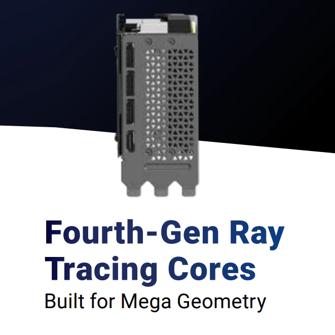 - Fourth-Gen Ray Tracing Cores – cinematic lighting, shadows, and reflections at real-time speeds.