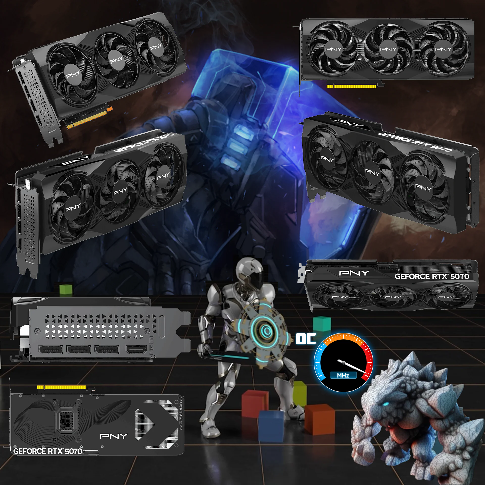 PNY GeForce RTX 5070 OC 12GB GDDR7 Overclocked GPU With Triple Fan Cooling & Stealth Mode , DLSS 4, Ray Tracing, PCIe 5.0, 6144 CUDA , 2587 MHz Boost, Blackwell Architecture, 4K/8K Ready, Metal Backplate, 250W TDP | BLACK | 1 YEAR WARRANTY