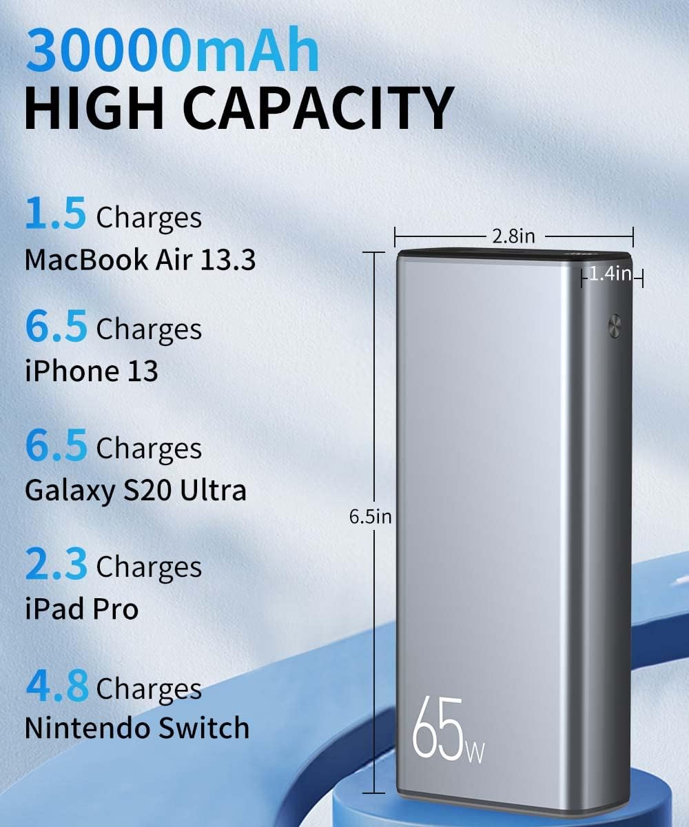 Portable Laptop Charger, PD 65W 30000mAh Power Bank USB C Fast Charging 3-Ports External Battery – UNIVERSAL COMPATIBILITY