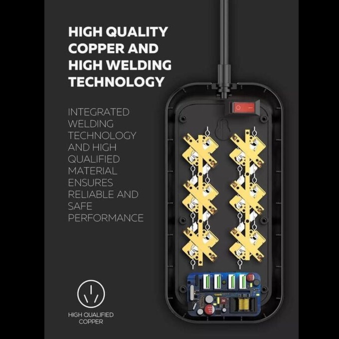 - 2M heavy-duty power cord can flow optimal power to connected devices.