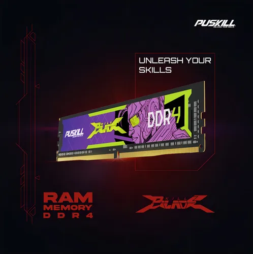 PUSKILL KILLBLADE 16GB DDR4 3200MHz Desktop RAM – CL22 DIMM, 25.6GB/s Transfer Rate, Gamer-Grade Performance | Black | PSK-D4D22M3200B-16G