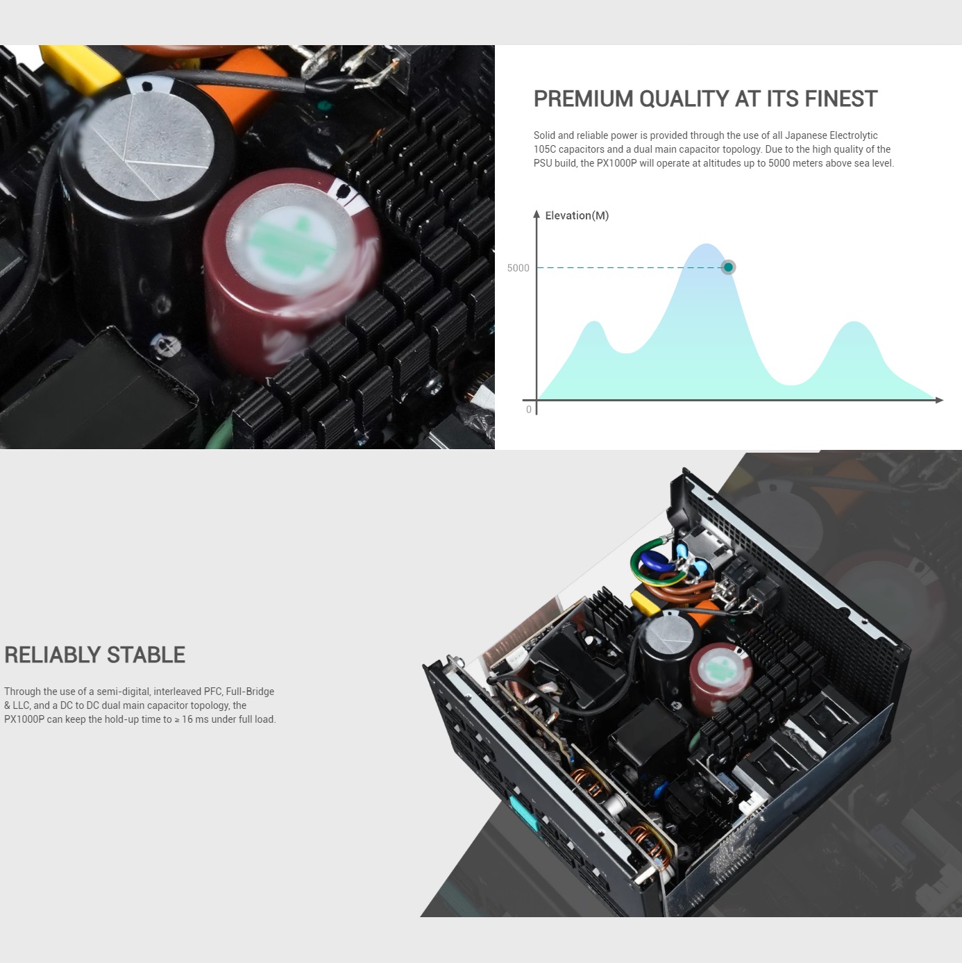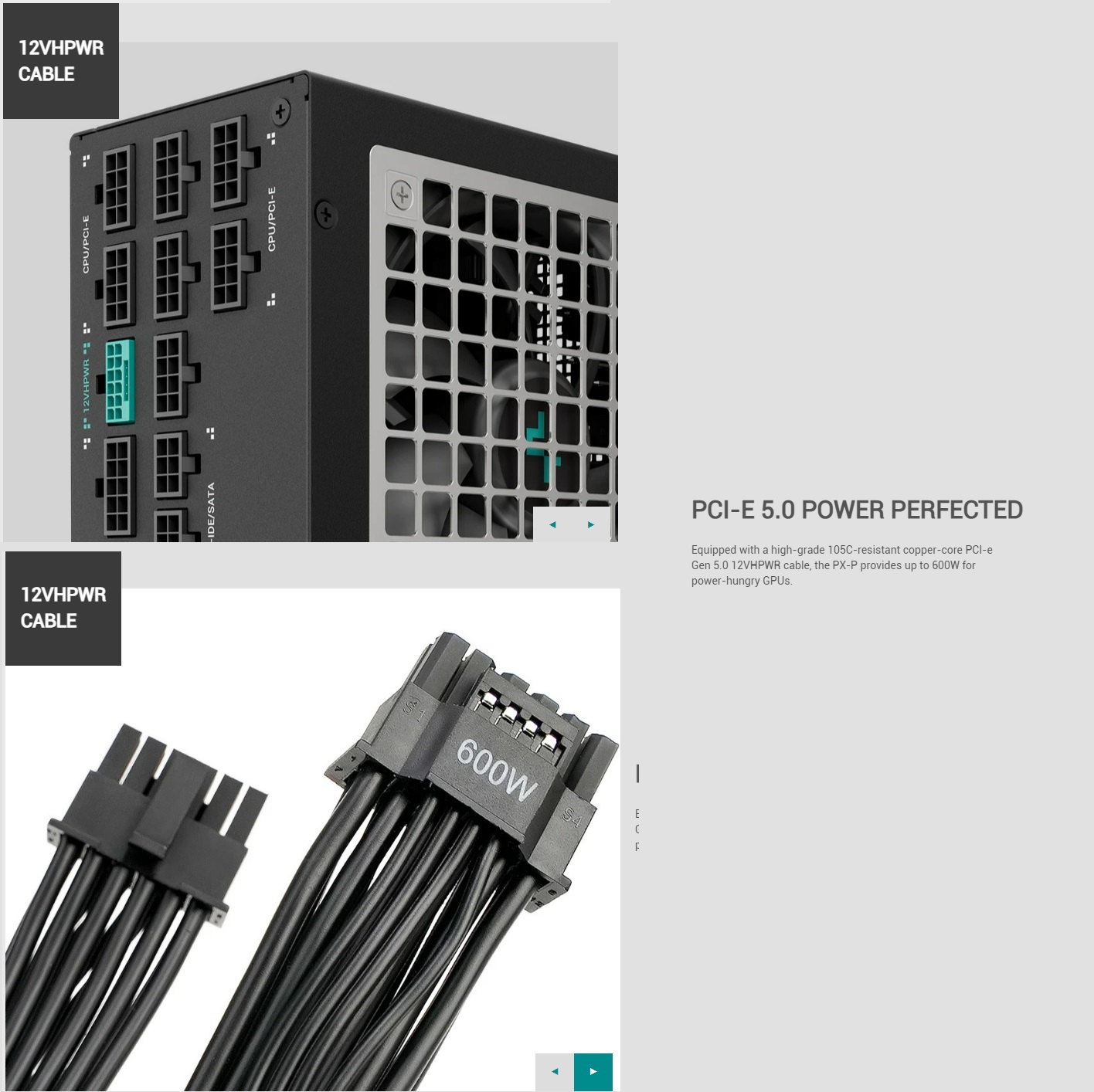 DeepCool PX1000P ATX 3.0 Power Supply 1000W 80 Plus and Cybenetics Platinum Certified ; 1 x 12VHPWR + 2 x EPS + 5 x PCI-e ports ; 3x Total GPU Power & 2x Total System Power for 0.1 ms ; with 105C Resistant Copper-core PCI-e Gen 5.0 12VHPWR Cable | BLACK