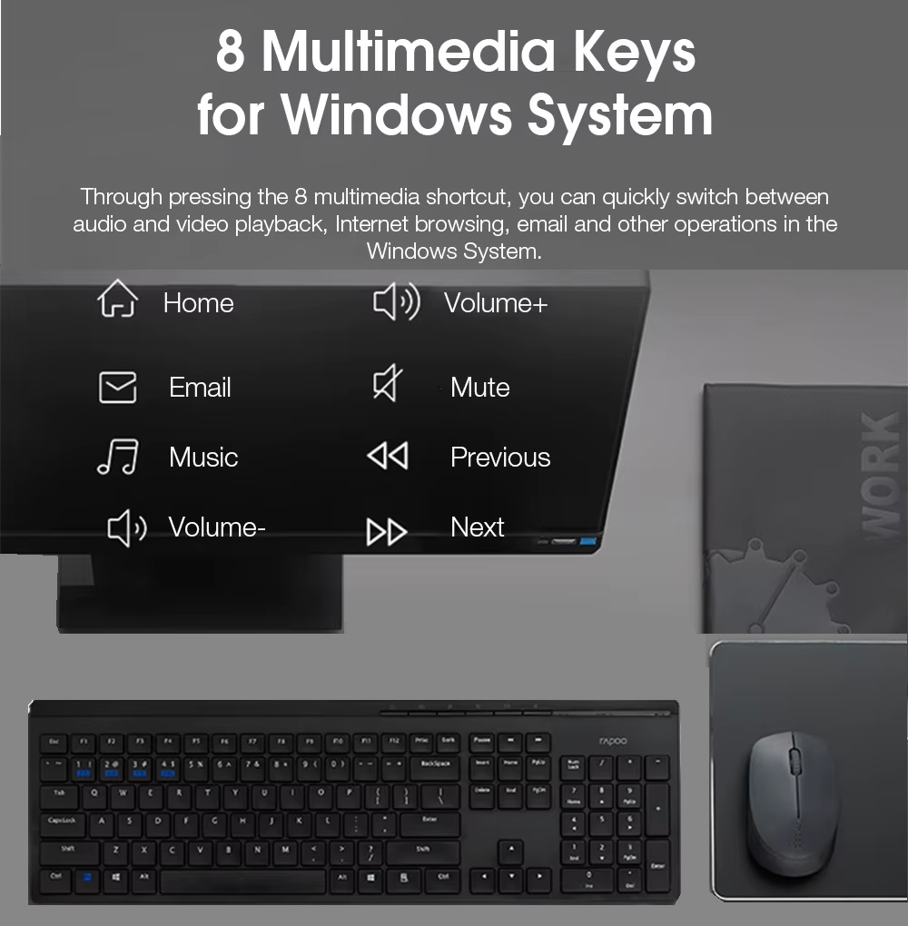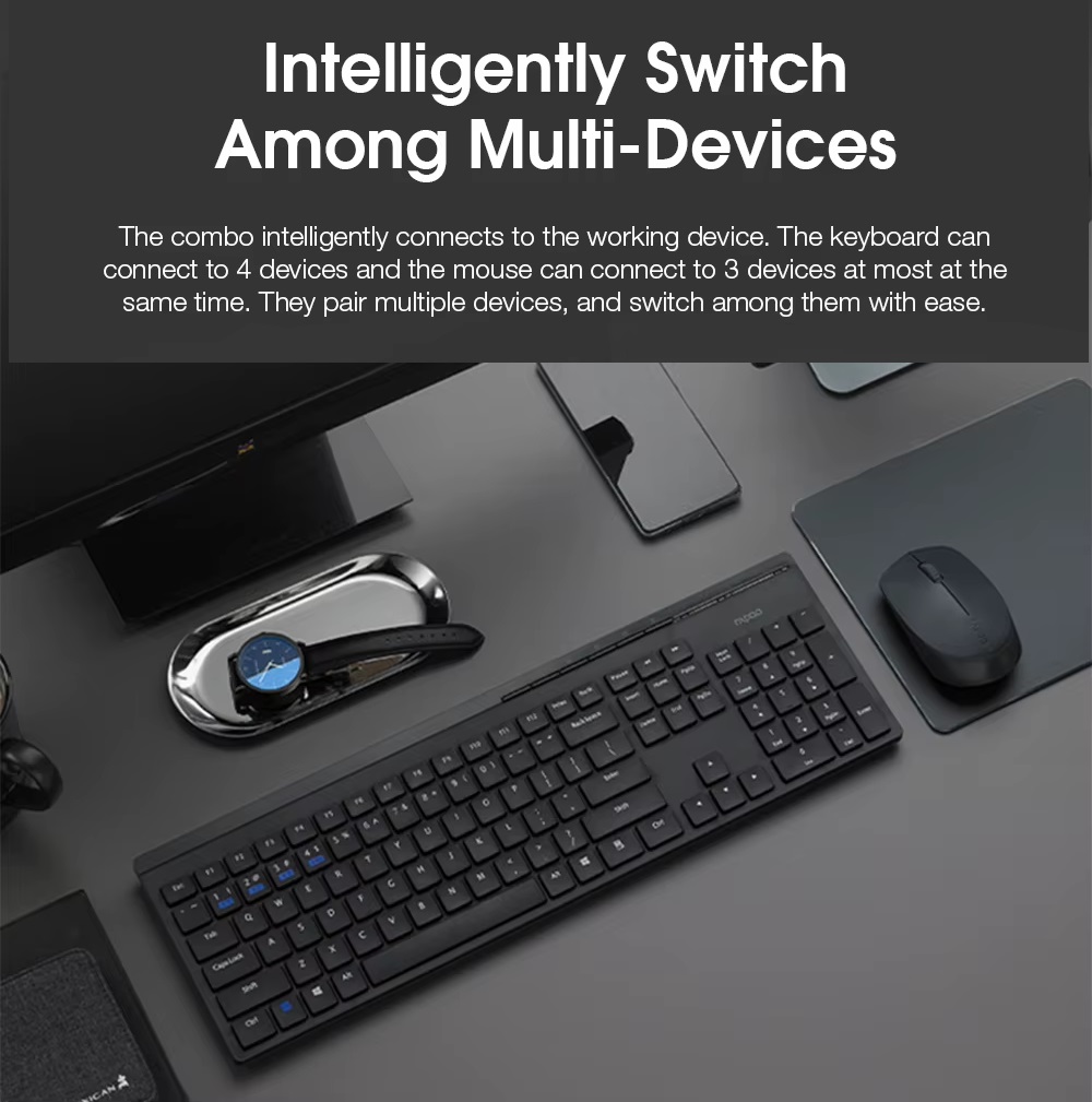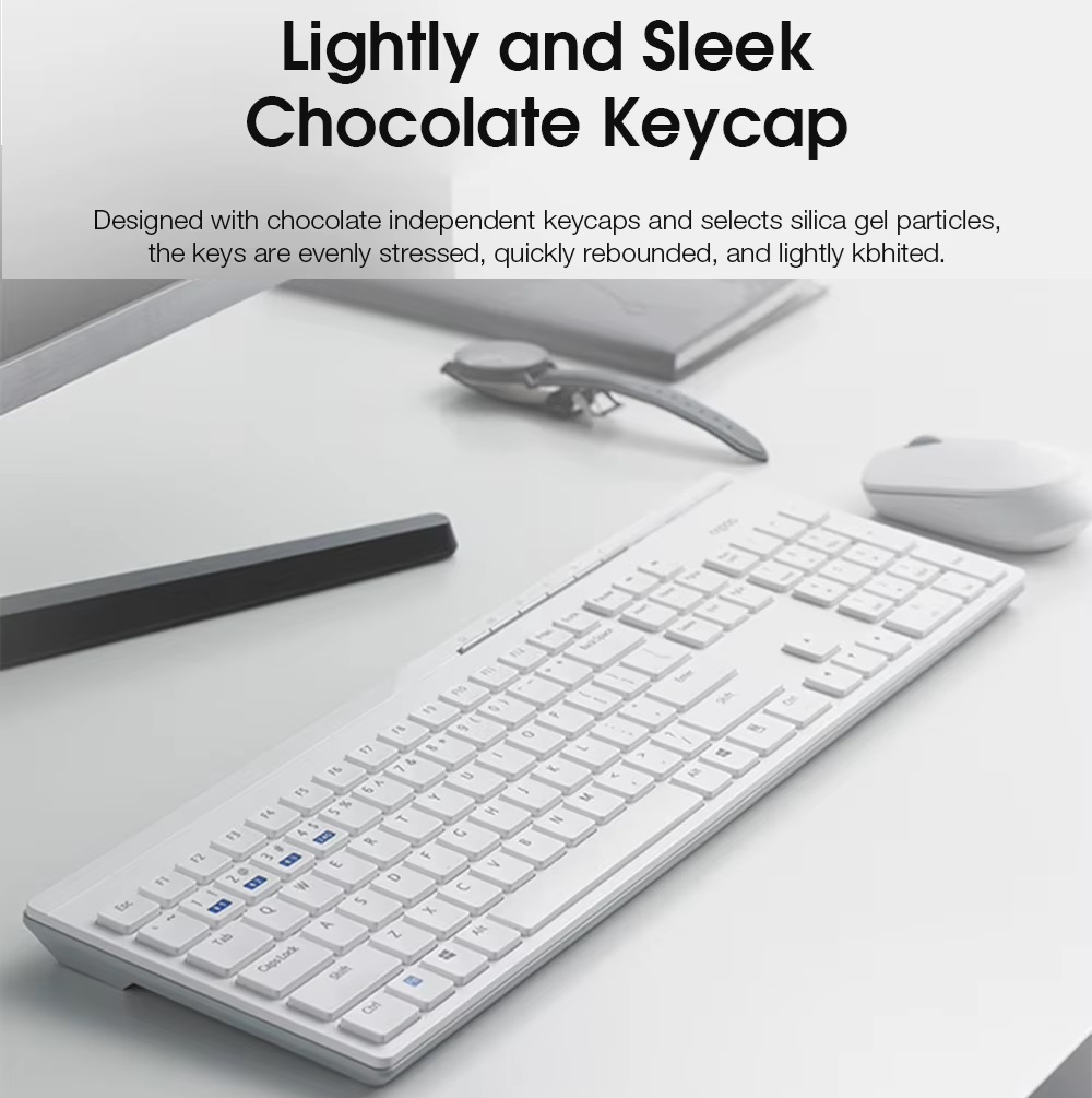 Rapoo 8100GT Keyboard Mouse Wireless Combo Dual-Mode BT3.0+BT5.0+2.4G Wireless (with USB receiver) 105-Key Chocolate Keycaps Keyboard for Office Business PC Laptop | WHITE