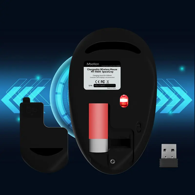 MEETION Rechargeable Wireless Mouse R600 with 1600 DPI, 10m Wireless Range, 2.4GHz Transmission, Mute Buttons, Auto Sleep, and Slim Design | BLACK GREY