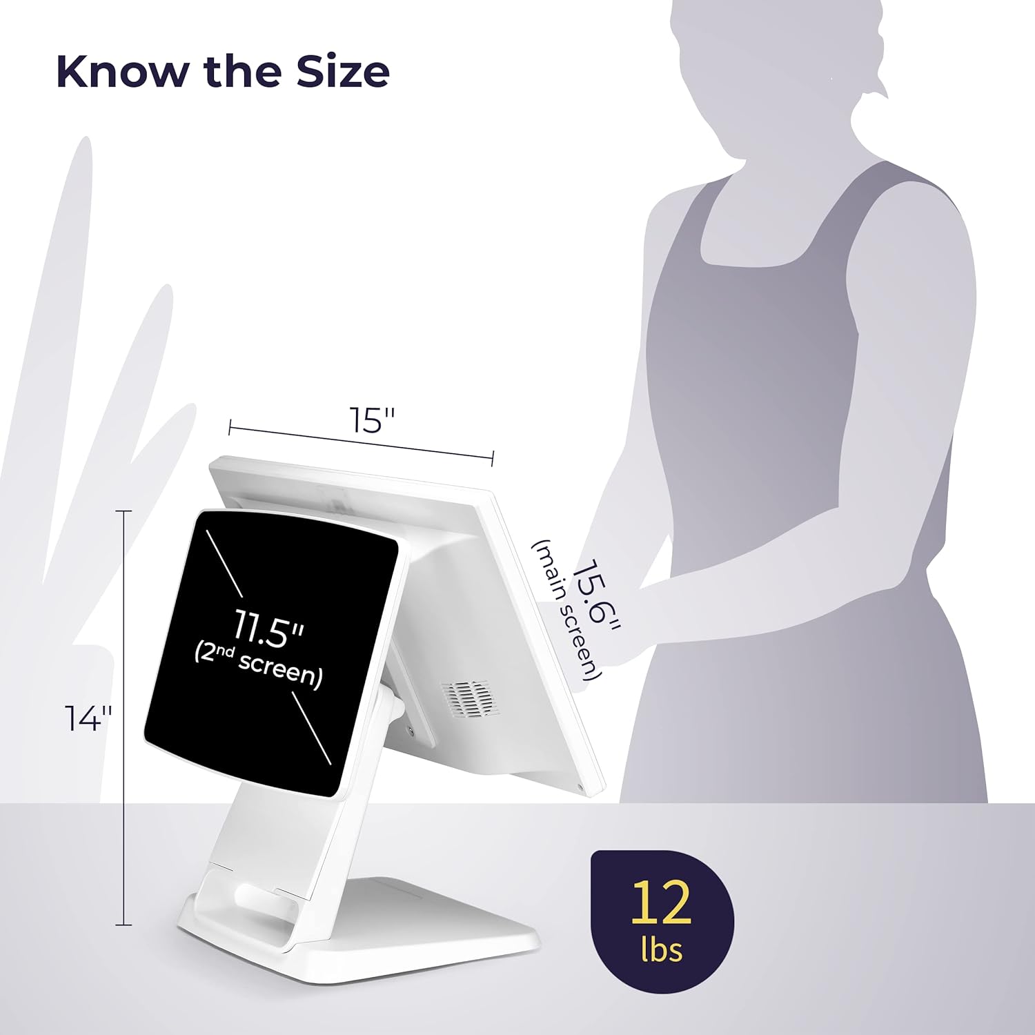 Retail and Restaurant POS Terminal Machine for Business, Point of Sale Cash Register with Intel Core I5 4TH Gen High-Performance CPU, 8GB Memory, and 128GB Hard Disk , 15.6″ & 11.6″ Dual Touch Screen – White