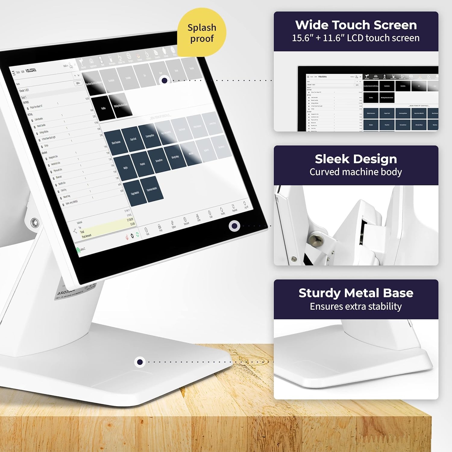 • Our sleek yet heavy-duty metal base ensures the terminal is well-stabled while taking orders with style.