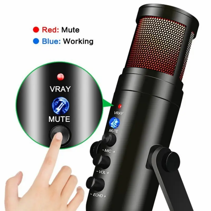 Desktop RGB Microphone USB Condenser Microphone with Stand , Bracket Mountable , Multiple RGB Modes , Sound Card & Hi-Fi Audio , Noise Reduction for E-Sports Gaming , Live Conference Recording