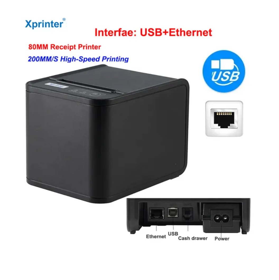 - Xprinter Thermal Receipt Printer 80mm POS Printer USB/USB+Lan port Printer With Auto Cutter Kitchen Printer – With 1 roll Paper