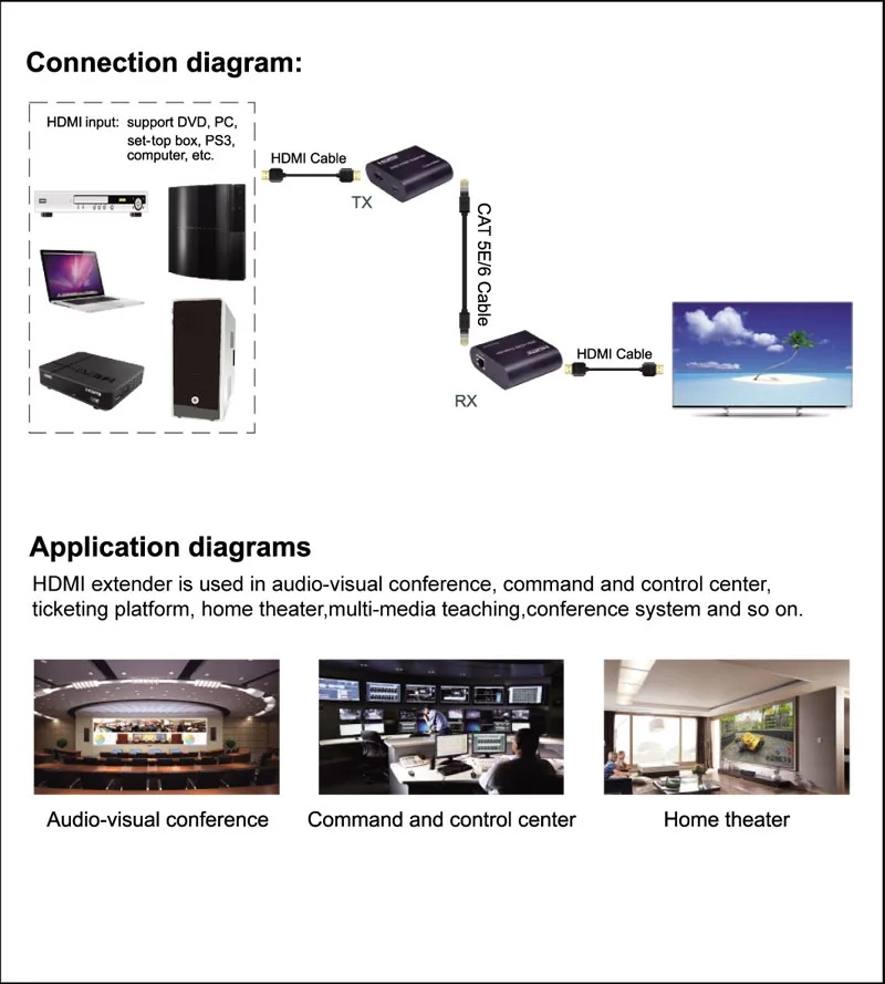 • HDMI Receiver Input/Output Ports:1 x HDMI Female port/1 x CAT6