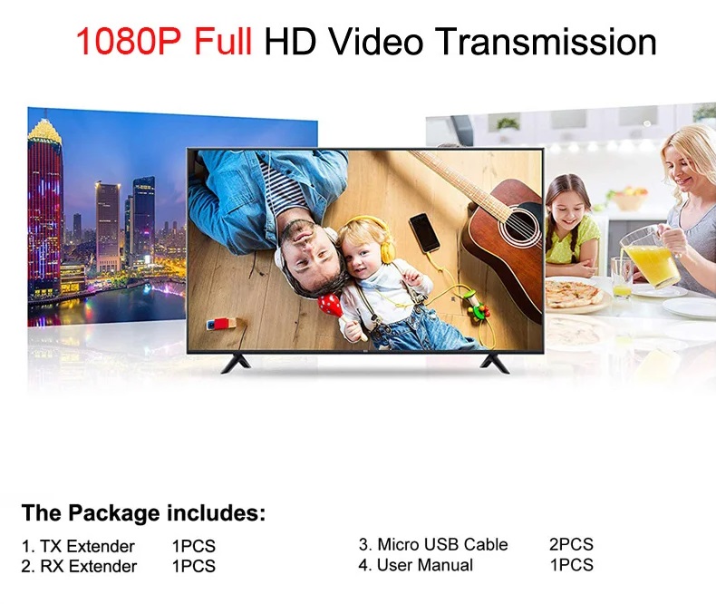Rj45 Cat6 Cat5e To 1080p HDMI Extender Converter 60M Ethernet Network Cable for PS4 Set / Top Box / Camera / PC  /Laptop  / TV / Projector / Monitor