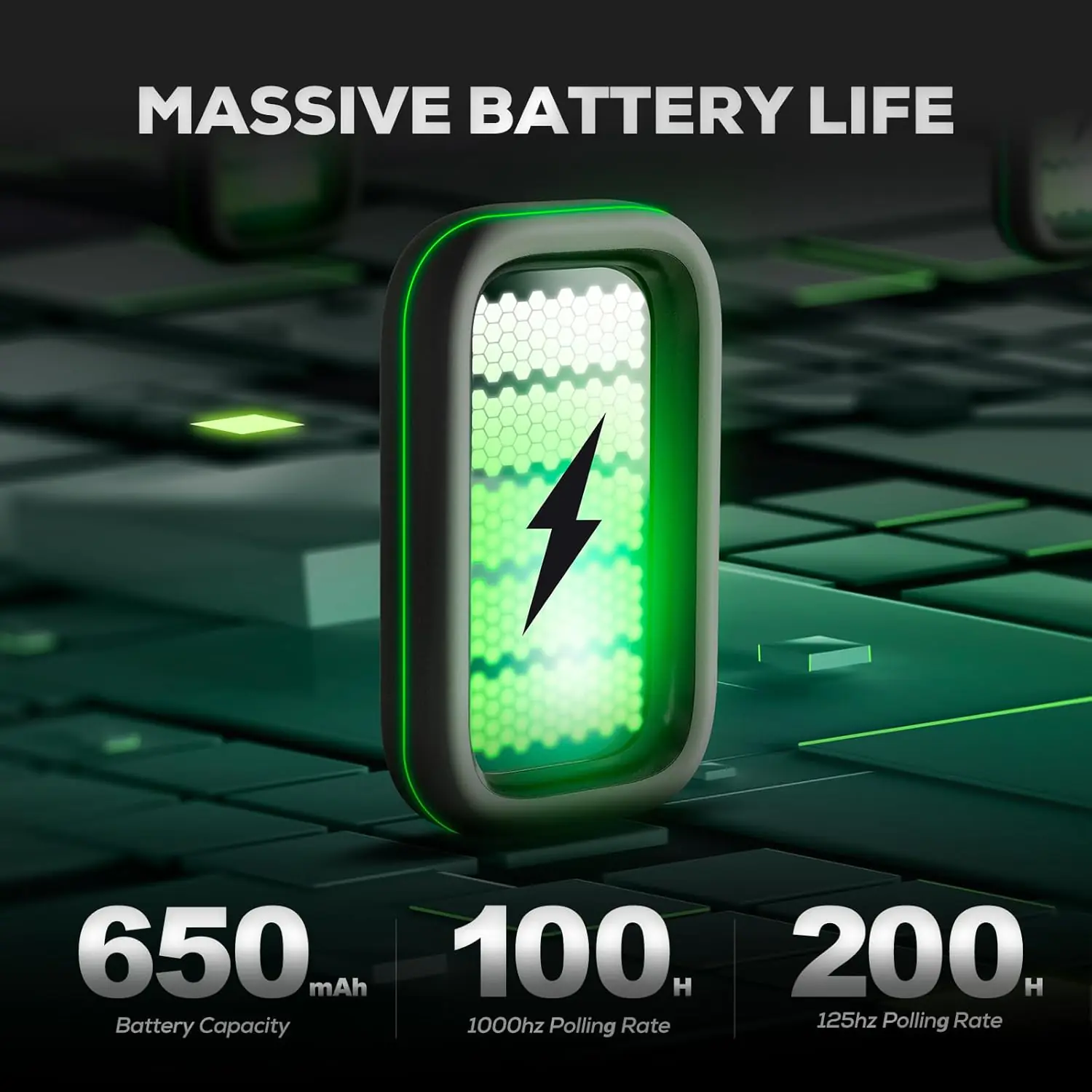 - 650mAh Long-Lasting Battery: Provides up to 209 hours of runtime depending on usage. Intelligent standby activates after 10 seconds of inactivity, and the mouse can be used while charging.