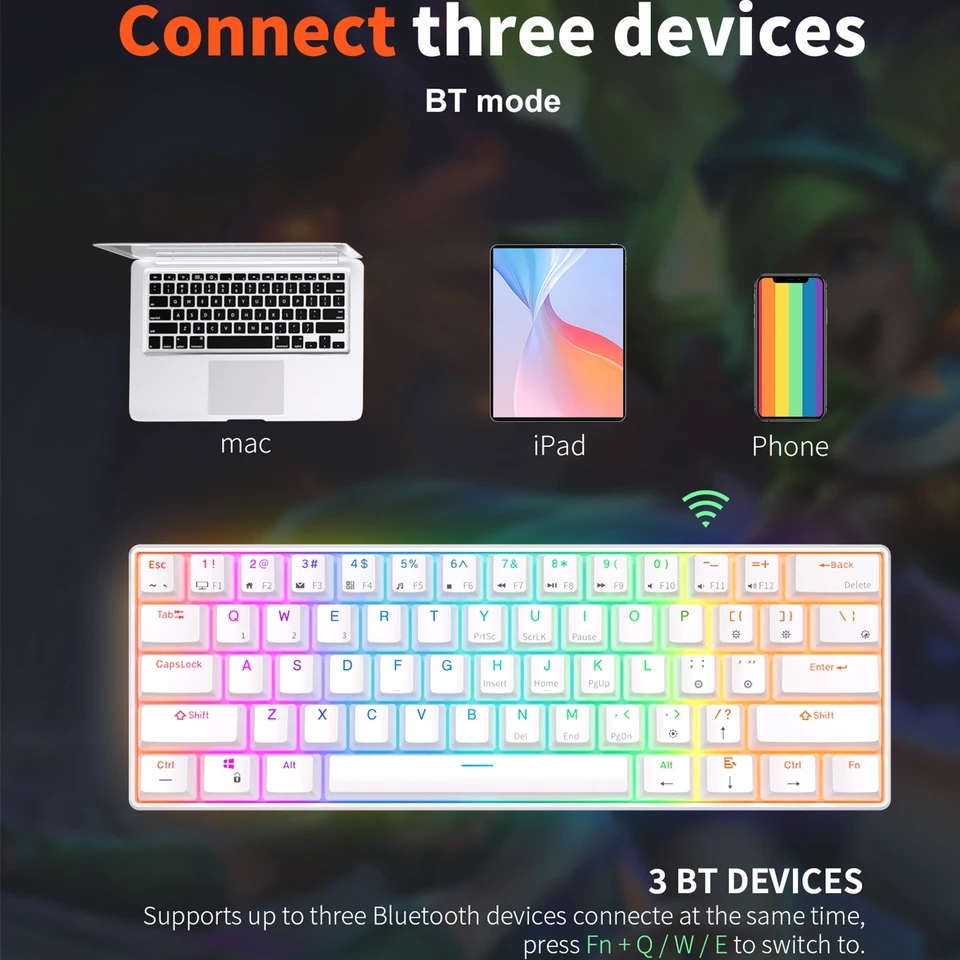 - With 2.4Ghz wireless, Bluetooth, and USB wired 3 modes connection, this is a wireless gaming keyboard that no longer limits how you can connect.