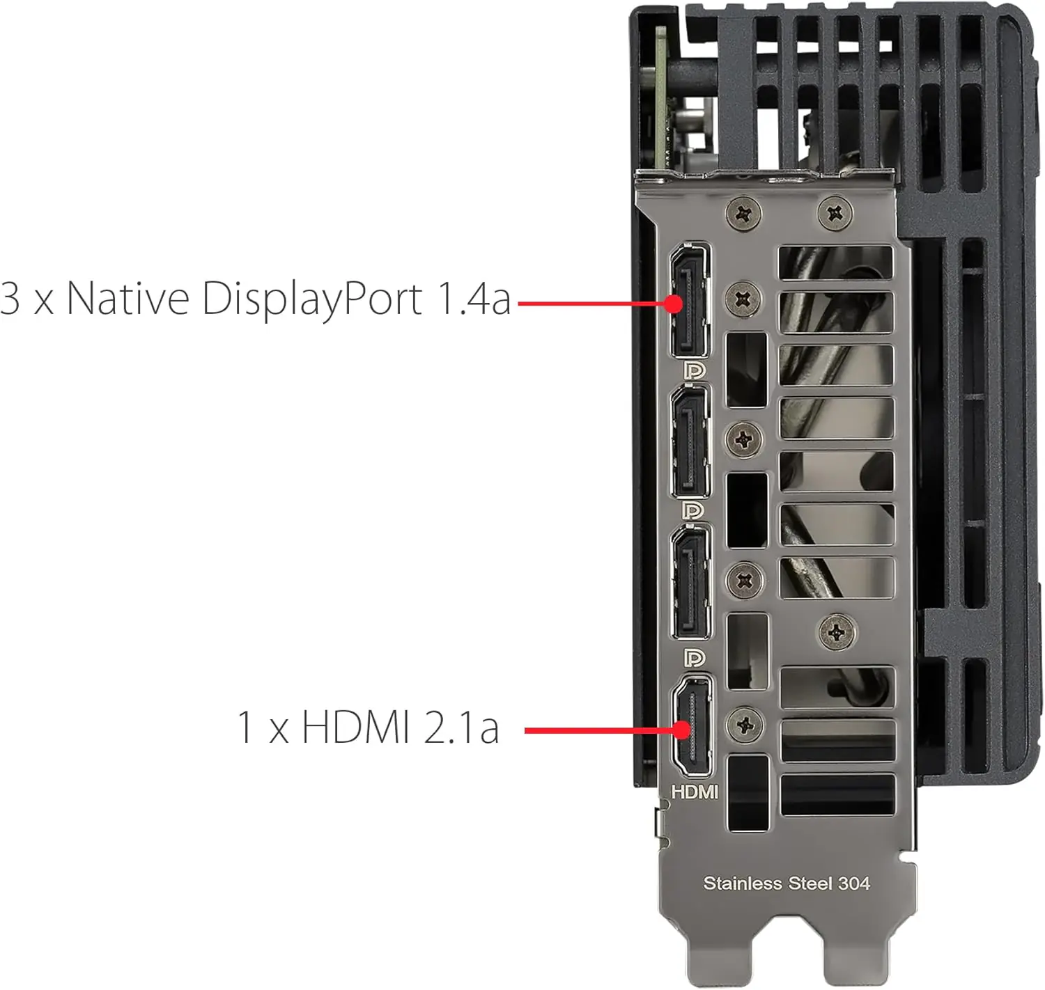 | Display Outputs | 1x HDMI 2.1a, 3x DisplayPort 1.4a |
