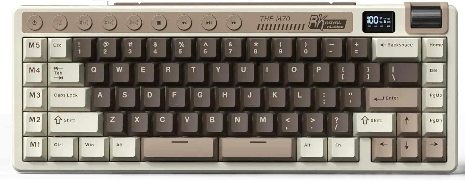 ROYAL KLUDGE RK M70 73-Key Tri-Mode Mechanical Keyboard With Beige Linear Switches, RGB Backlight, Macro Keys, Display, Volume Knob, Hot-Swappable, 6000mAh Battery