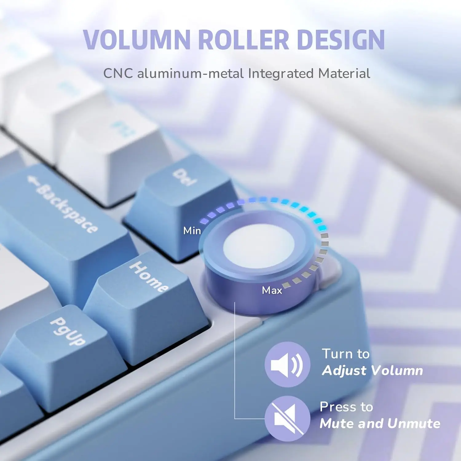 ROYAL KLUDGE RKR75 Wired 81-Key Mechanical Keyboard With Blue Switches, Skycyan RGB, 75% Layout, Volume Knob, Hot-Swappable Keys, Gasket Mount, PBT Keycaps
