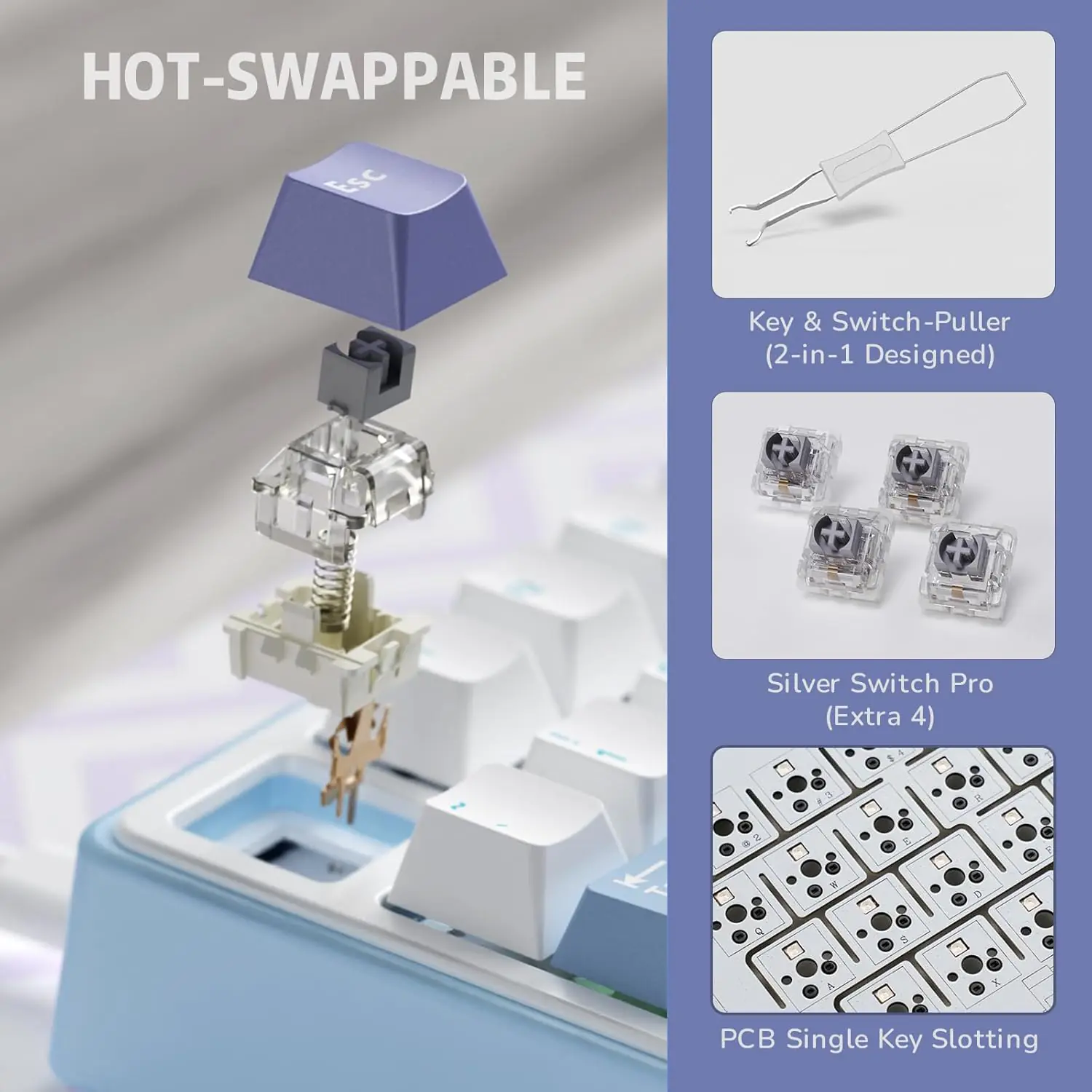 - Gasket Mount Design: Triple-layer sound absorption with poron cotton, IXPE foam, and sponge case foam for reduced vibration and a refined typing experience.