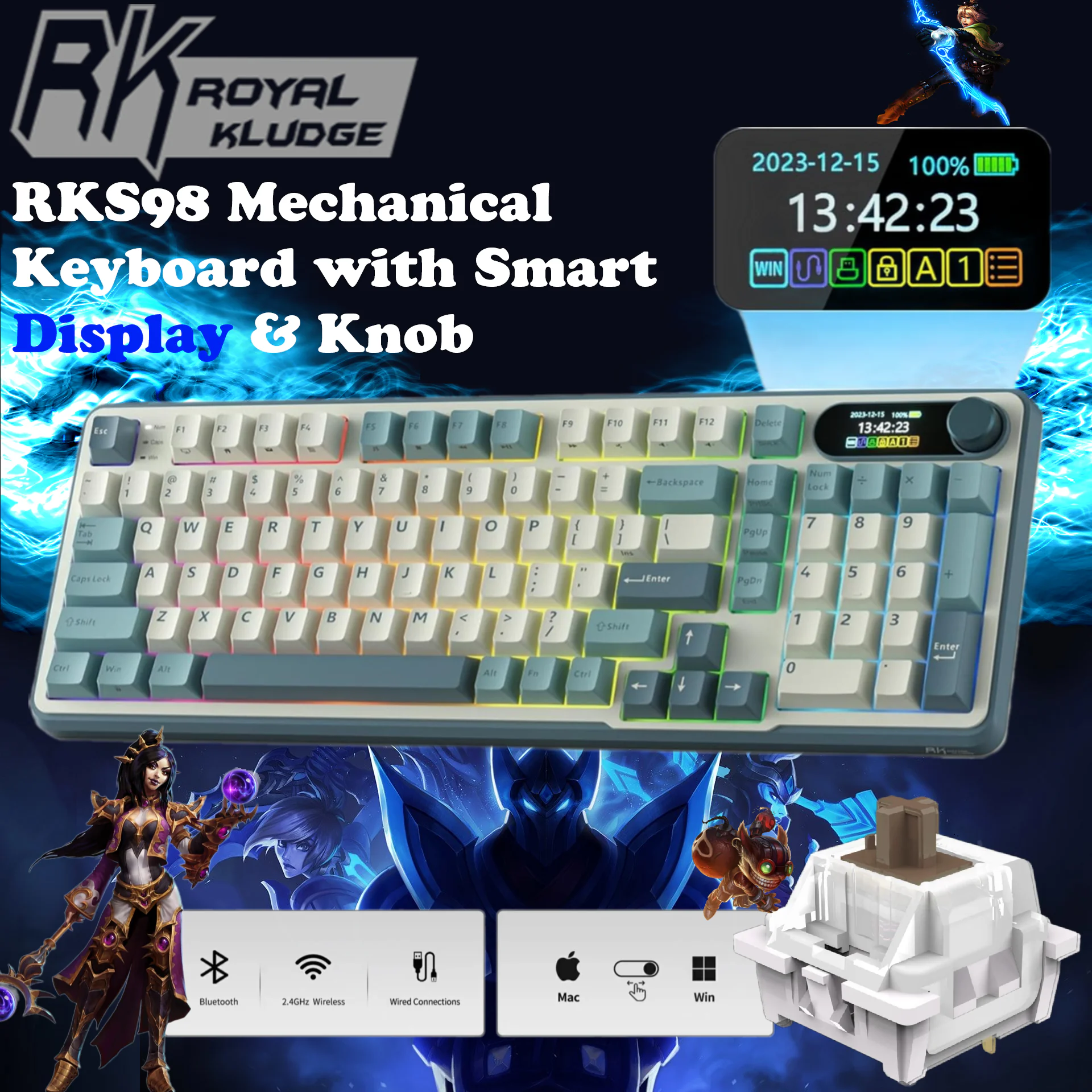 RK Royal Kludge S98 96% Wireless Mechanical Keyboard With Smart Display, Knob, 12 Modes RGB, Hot Swappable Switches, Triple Mode, Sound Dampening & 3750mAh Battery, Brown (Tactile) | BLUE LIGHT CLOUD