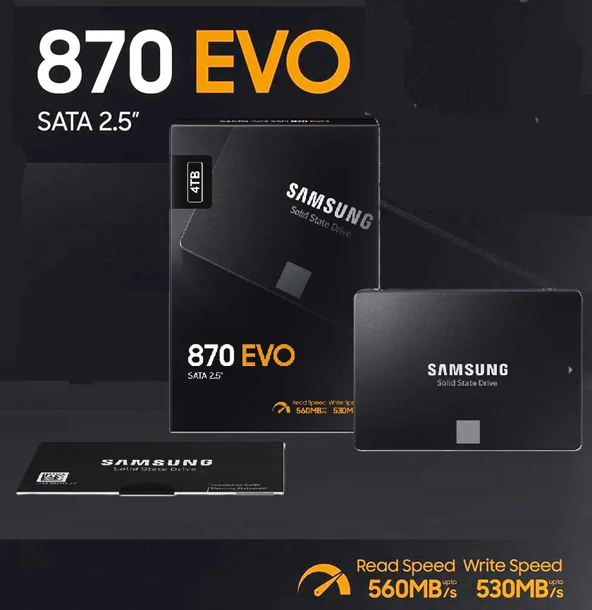 Samsung 870 EVO 4TB 2.5″ SATA III SSD – Up to 560MB/s Read, 530MB/s Write, V-NAND, AES 256-bit Encryption, for PC, Laptop, Mac, NAS, Video Recording