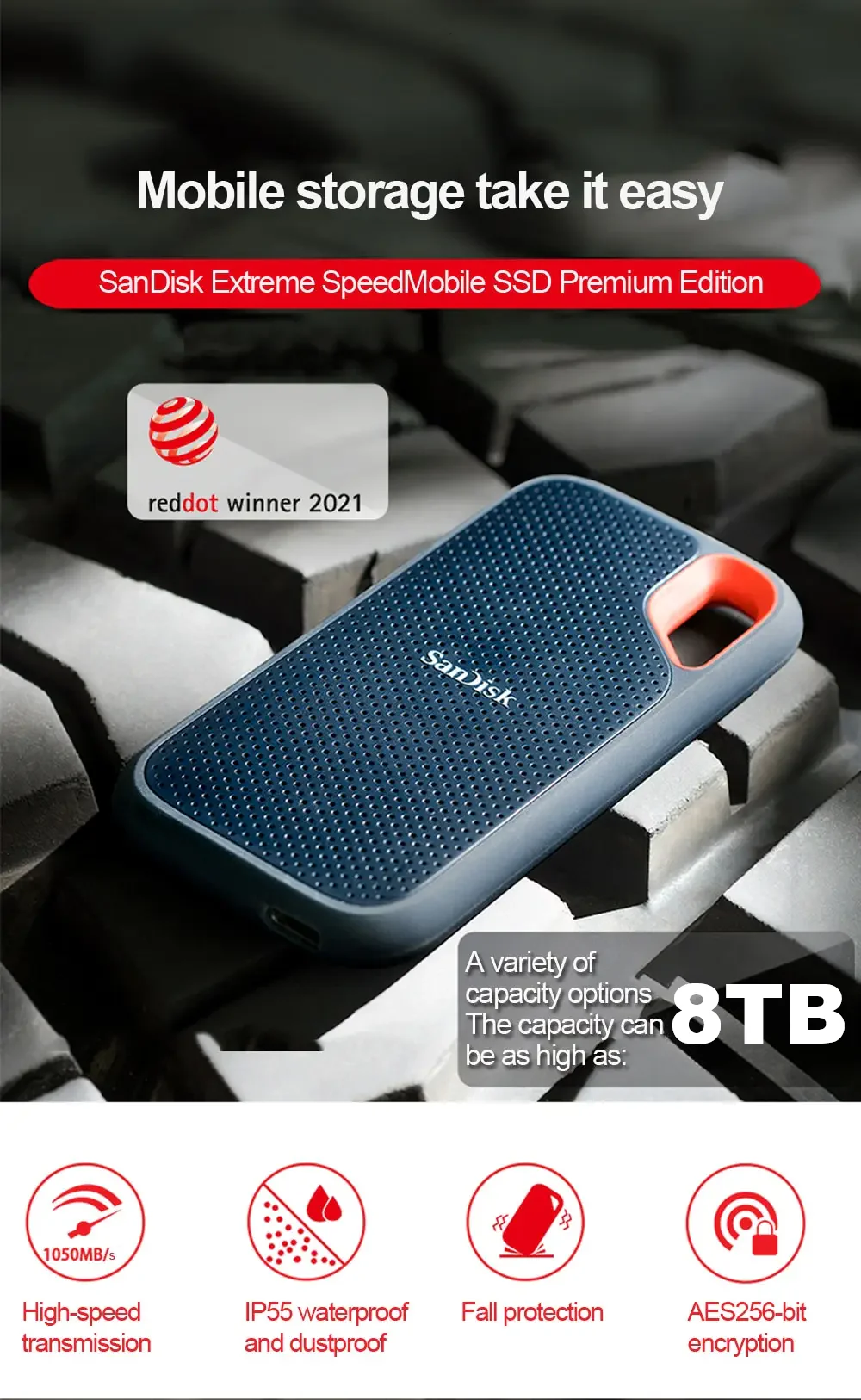 Designed for the rugged life with up to 3-meter drop protection and IP65-rated water and dust resistance. Perfect for adventurers, photographers, and on-the-go editors. - Password Protection + Encryption