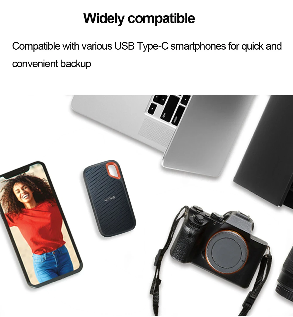 Plug-and-play support across Android 11+, iOS 13+, macOS 11+, Windows 10+, and USB-C equipped tablets and smartphones. - SanDisk Memory Zone App