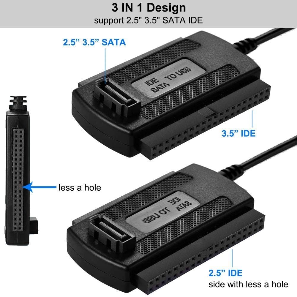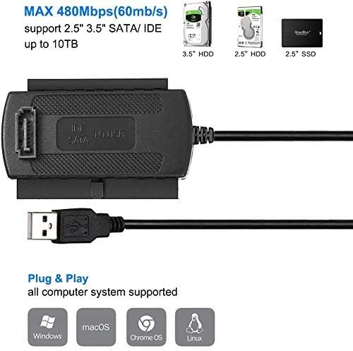 SATA/PATA/IDE Drive to USB 2.0 Adapter Converter Cable for 2.5/3.5 Inch Hard Drive/5 inch Optical Drive with External AC Power Adapter