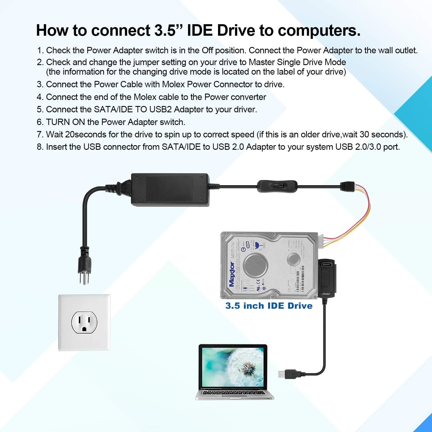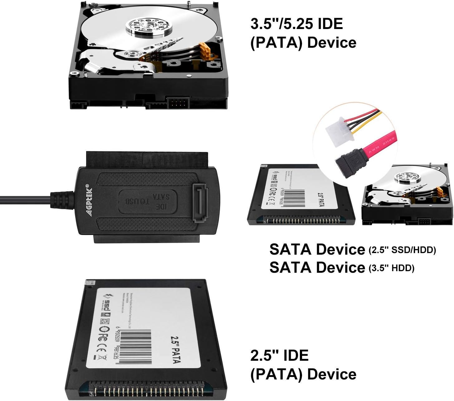 - Use your 2.5″ / 3.5″ IDE hard drive or SATA hard disc as an additional external hard drive. Connect your SATA / IDE device to your computer through a USB port. Compliant with USB 1.1 and 2.0 standards. Usb 2.0 interface for 480 MB/s high speed data transfer. Package includes USB to IDE / SATA cable adapter, SATA data cable, AC adapter, AC to IDE power converter, IDE to SATA and power cable