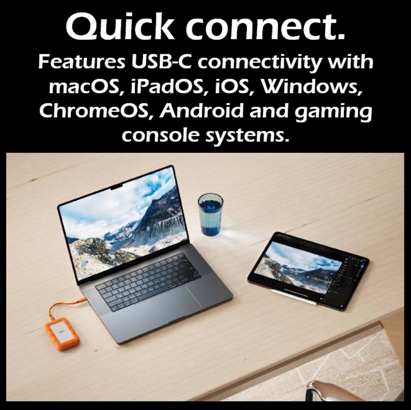 - Universal USB-C Compatibility Across Devices : Thanks to USB-C connectivity, this SSD works seamlessly with macOS, iPadOS, iOS, Windows, ChromeOS, Android, and gaming console systems straight out of the box. It also supports iPhone USB-C ProRes 4K 120fps video recording, making it a powerful tool for mobile content creation.