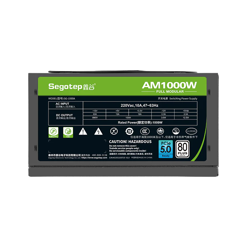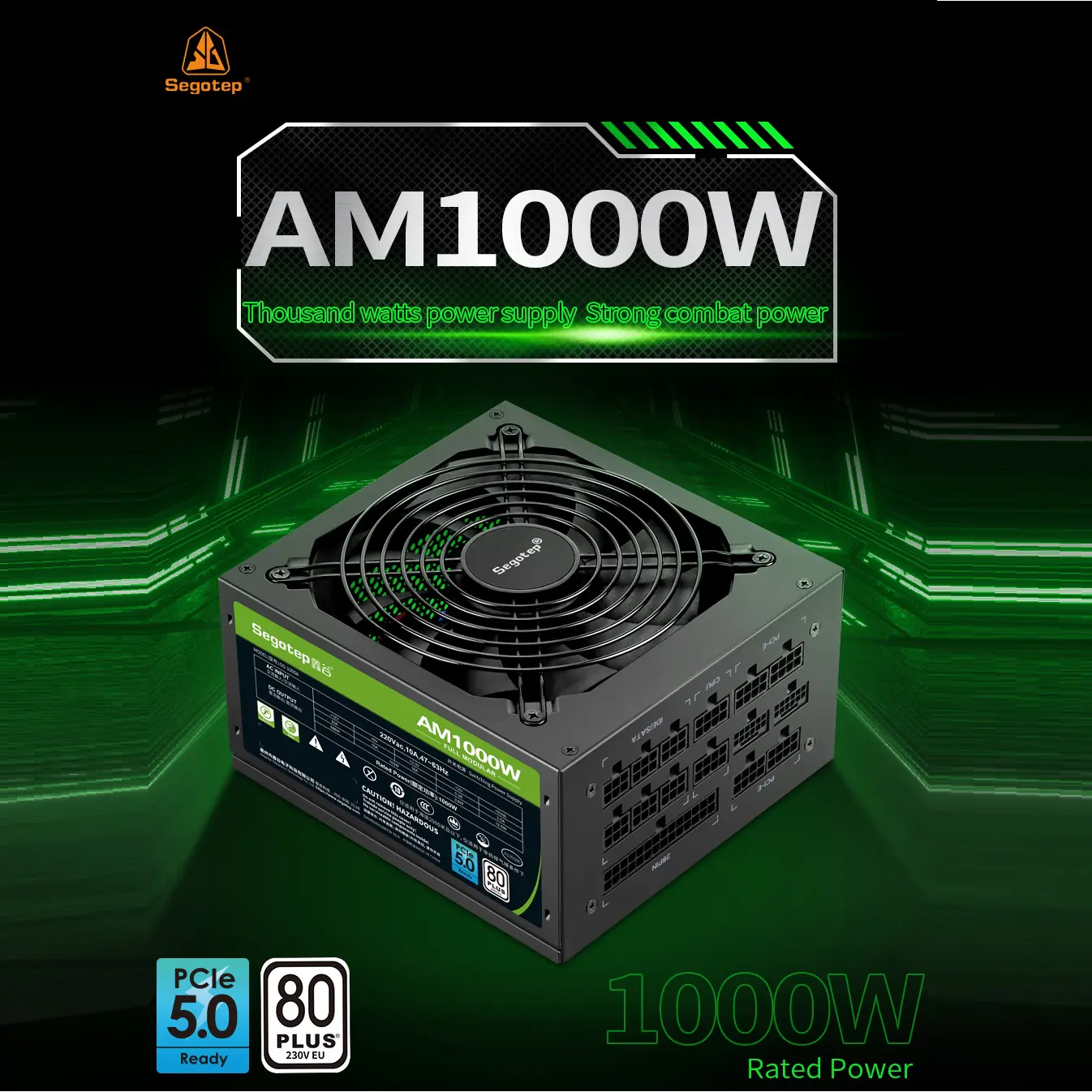 Segotep AM1000W 80+ Bronze PSU | Fully Modular | PCIe 5.0 & ATX 3.0 Ready | 135mm Dual Ball Bearing Fan | Black