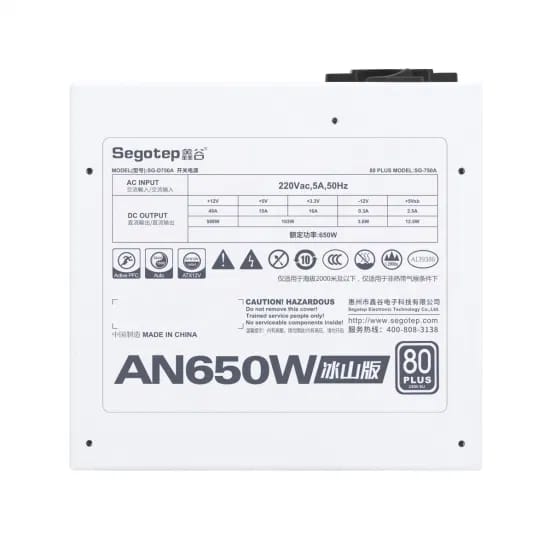 SEGOTEP AN650W 650W WHITE 80PLUS NON MODULAR POWER SUPPLY “WHITE”