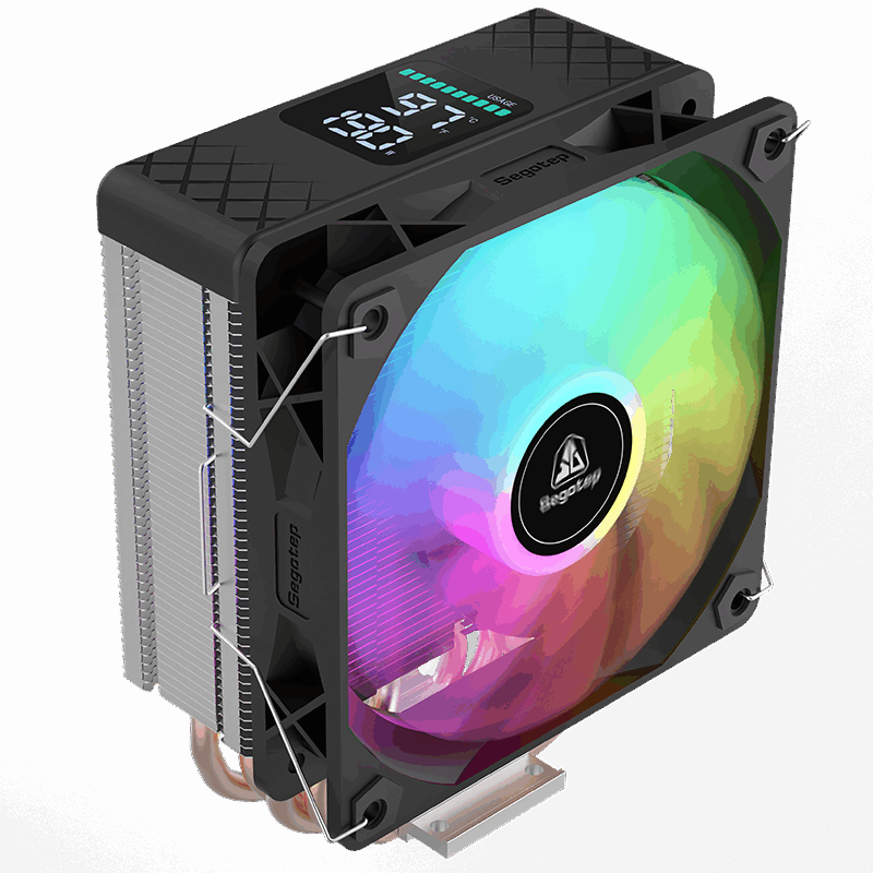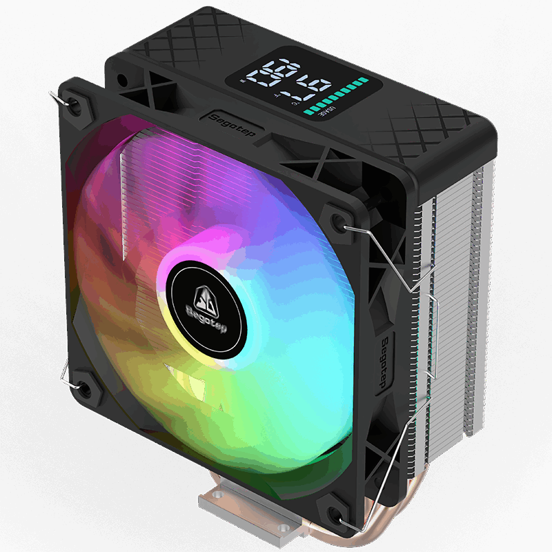 Segotep F16 ARGB CPU Air Cooler with 6×6mm Copper Heat Pipes, Detachable Digital Display, 120mm Hydraulic Bearing Fan, 155mm Tower Height, Intel LGA/AMD AM4/AM5 Compatible | Black