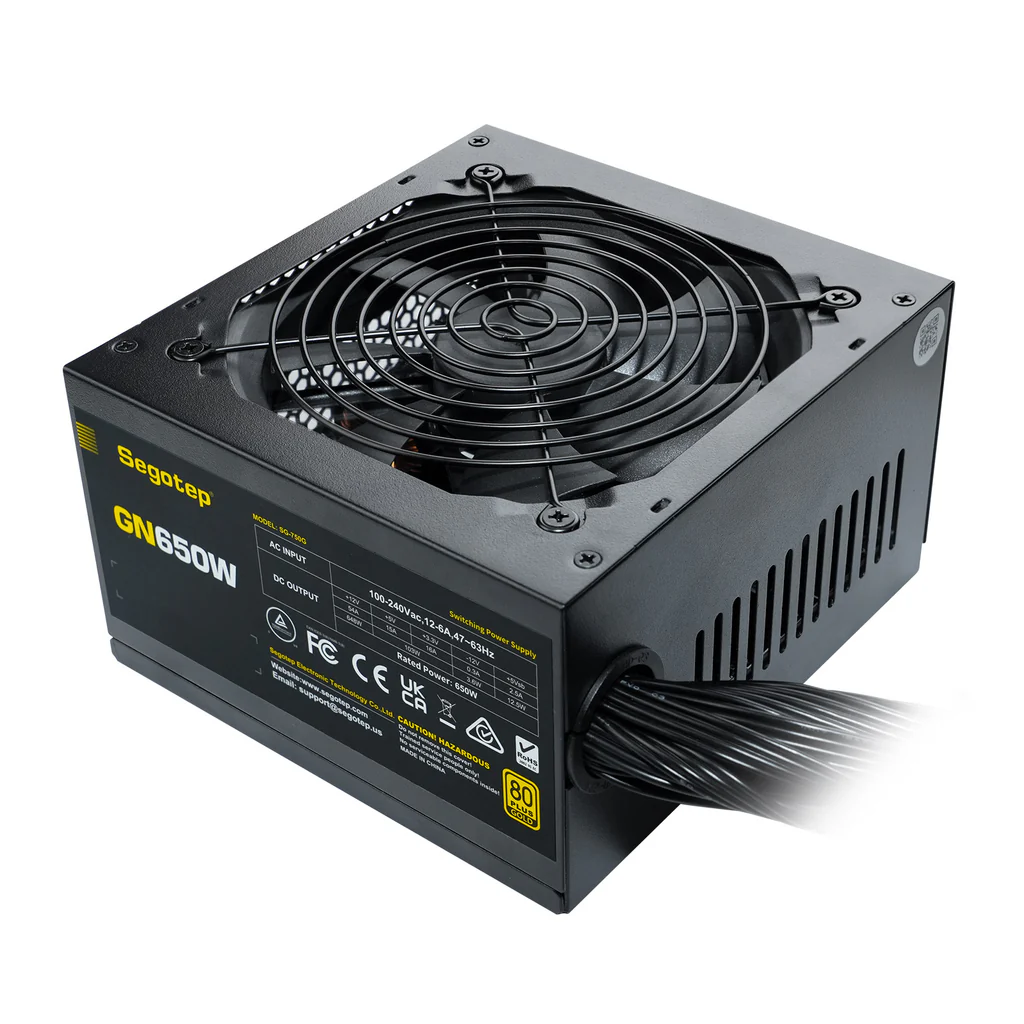 Segotep GN650 650W 80+ Gold Certified Non-Modular ATX Power Supply with 120mm Silent Fan, Single 12V Rail, PFC Protection, RoHS Compliance, Global Voltage Adaptation