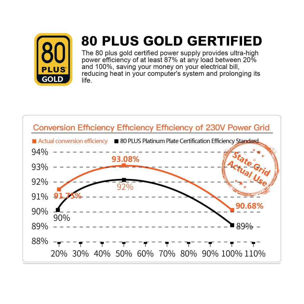 Includes PFC (Power Factor Correction) protection, safeguarding your system from power surges and instability. Additionally, it meets RoHS environmental standards, ensuring a safe and eco-friendly design. - High-Quality Components