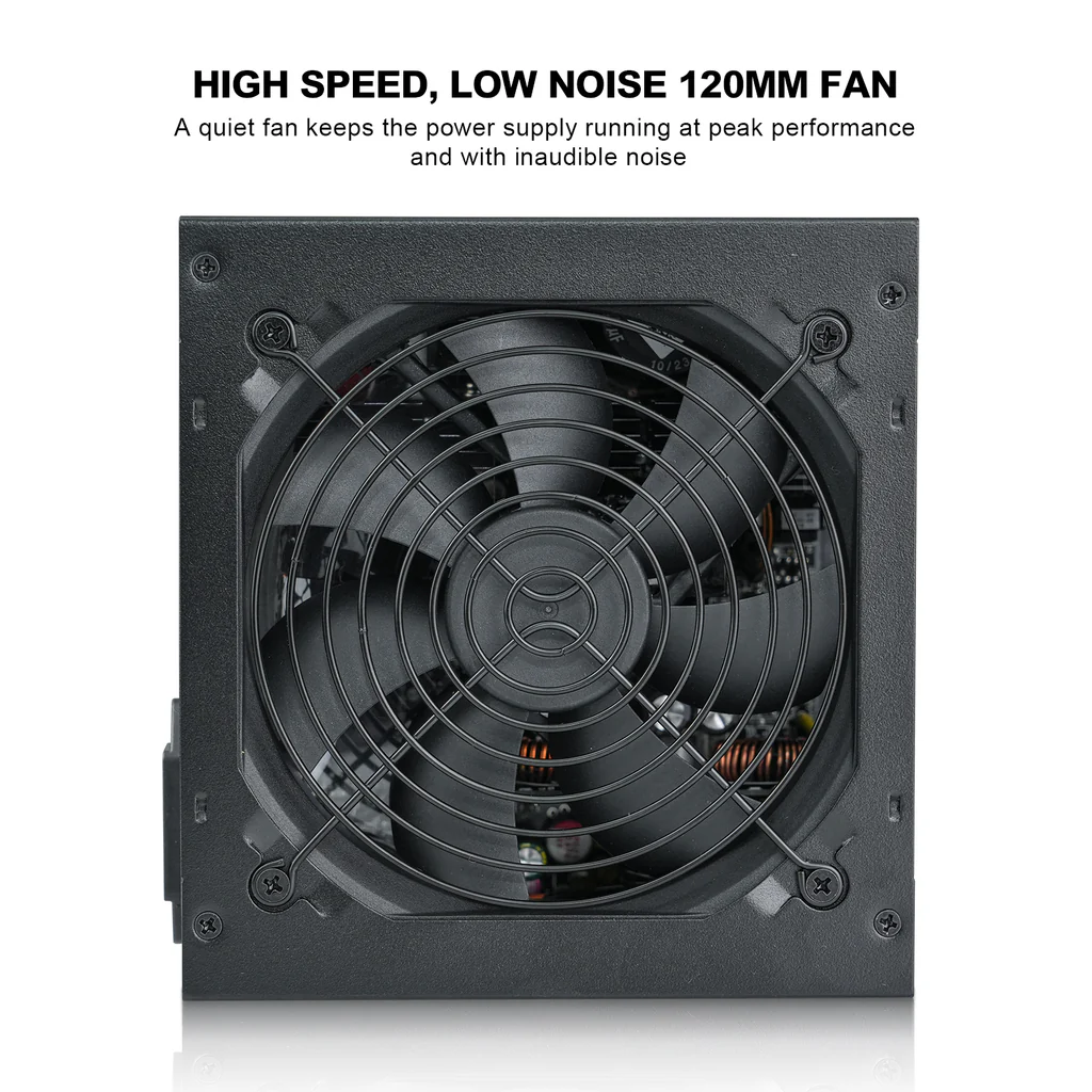 Equipped with a single +12V rail, this PSU delivers reliable and stable power, even during high-demand gaming sessions or heavy computing tasks. It ensures consistent performance across CPUs, GPUs, and other components. - 120mm Silent Cooling Fan