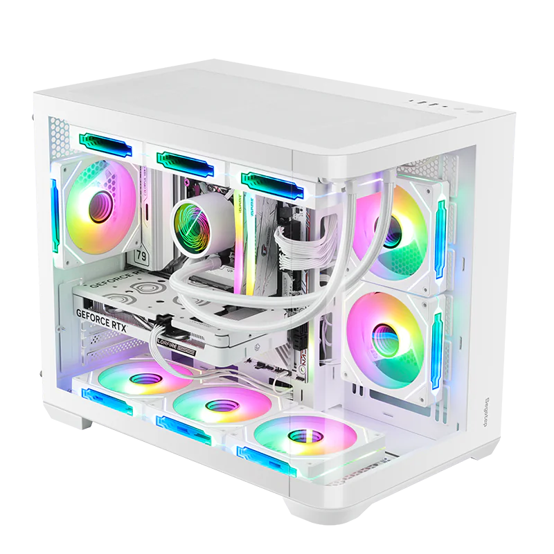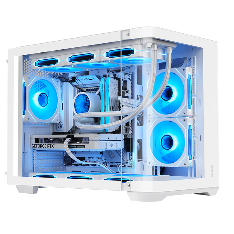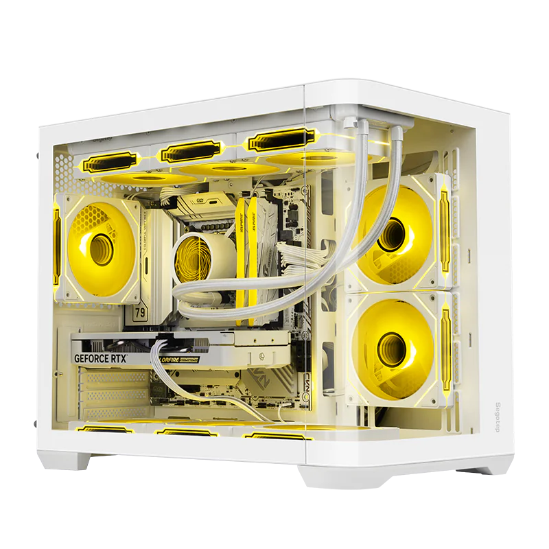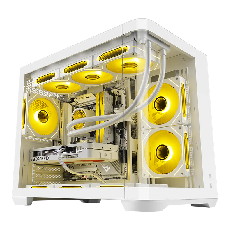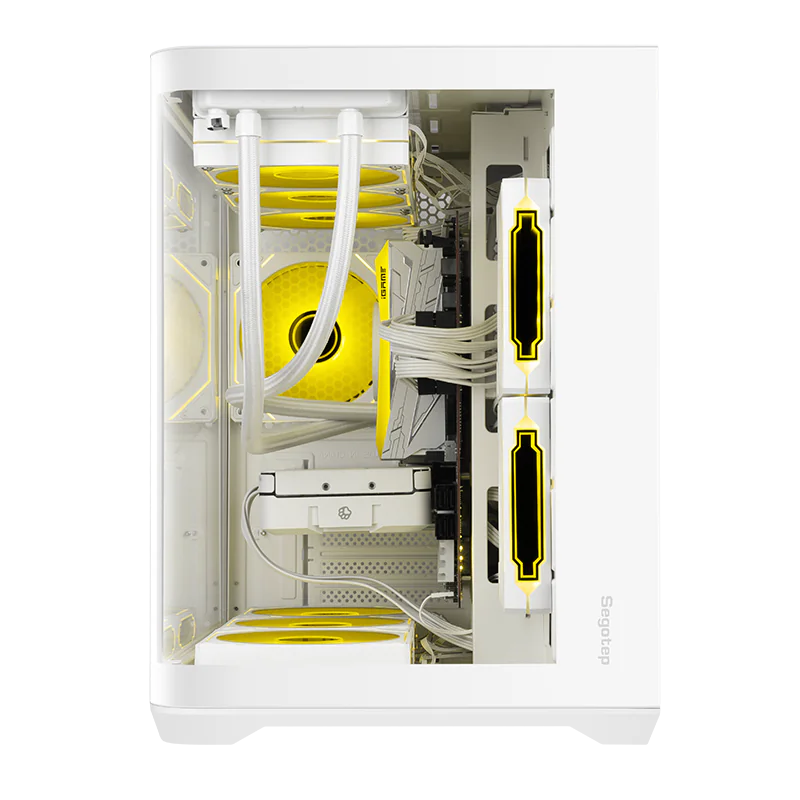 Segotep Lumi 3S M-ATX Case | Tempered Glass Side Panel | USB Type-C | High Airflow | Supports 360mm Radiator | Sleek Compact Gaming Case | White