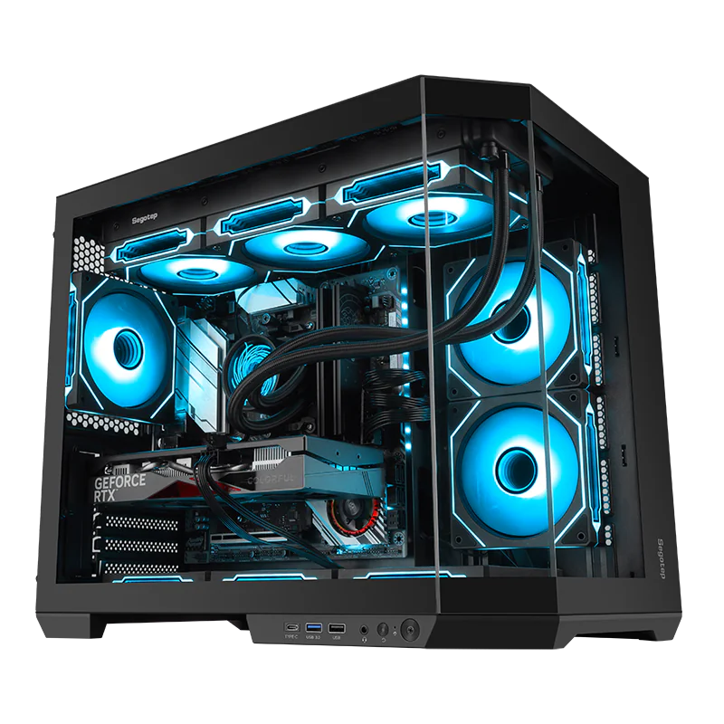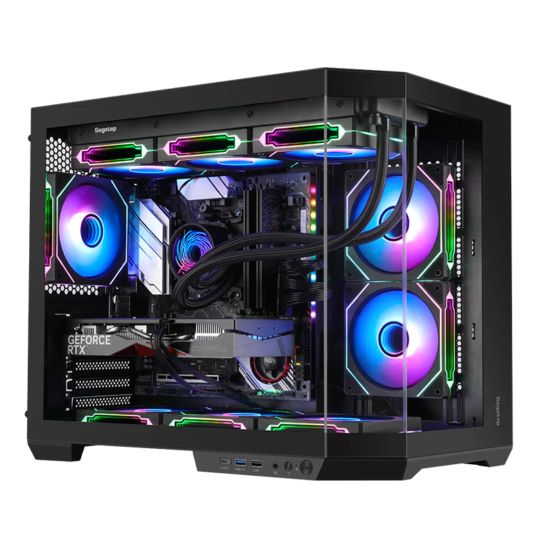 Segotep Lumi 3T M-ATX PC Case | Tempered Glass Side | USB Type-C | Supports 360mm Radiator | High Airflow Gaming Case | Compact & Sleek Design | BLACK