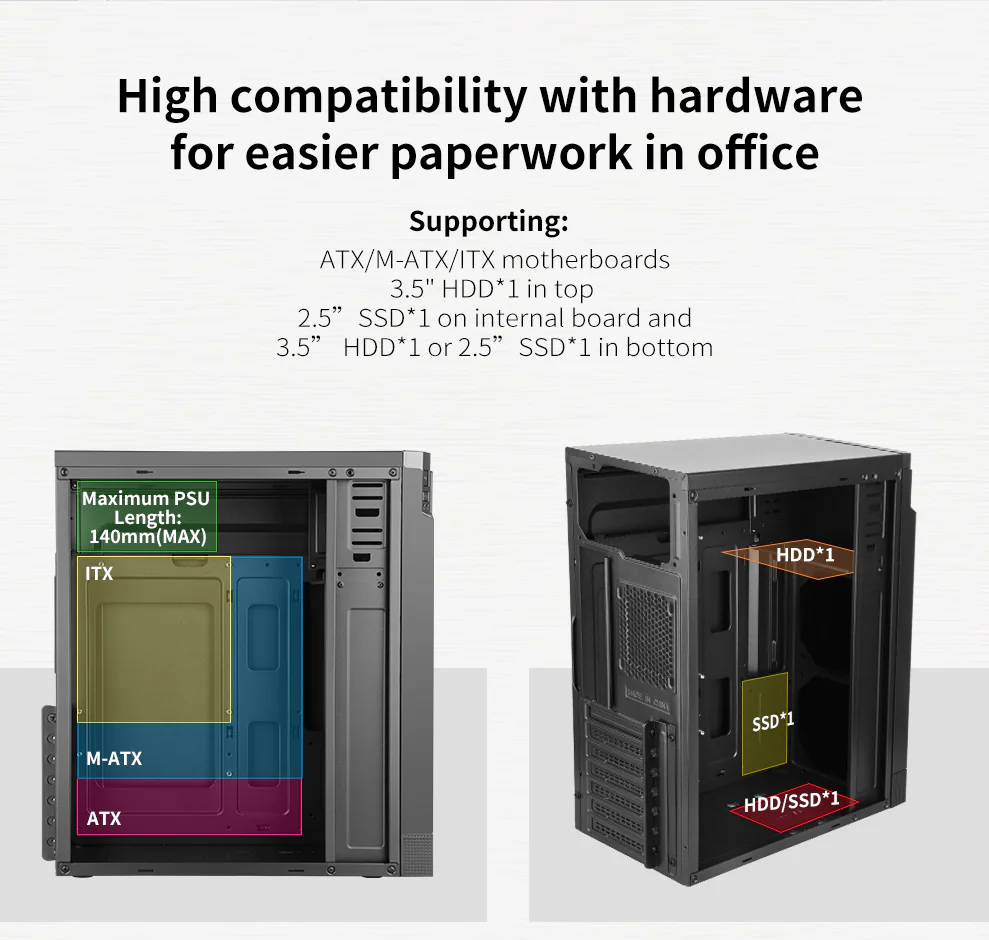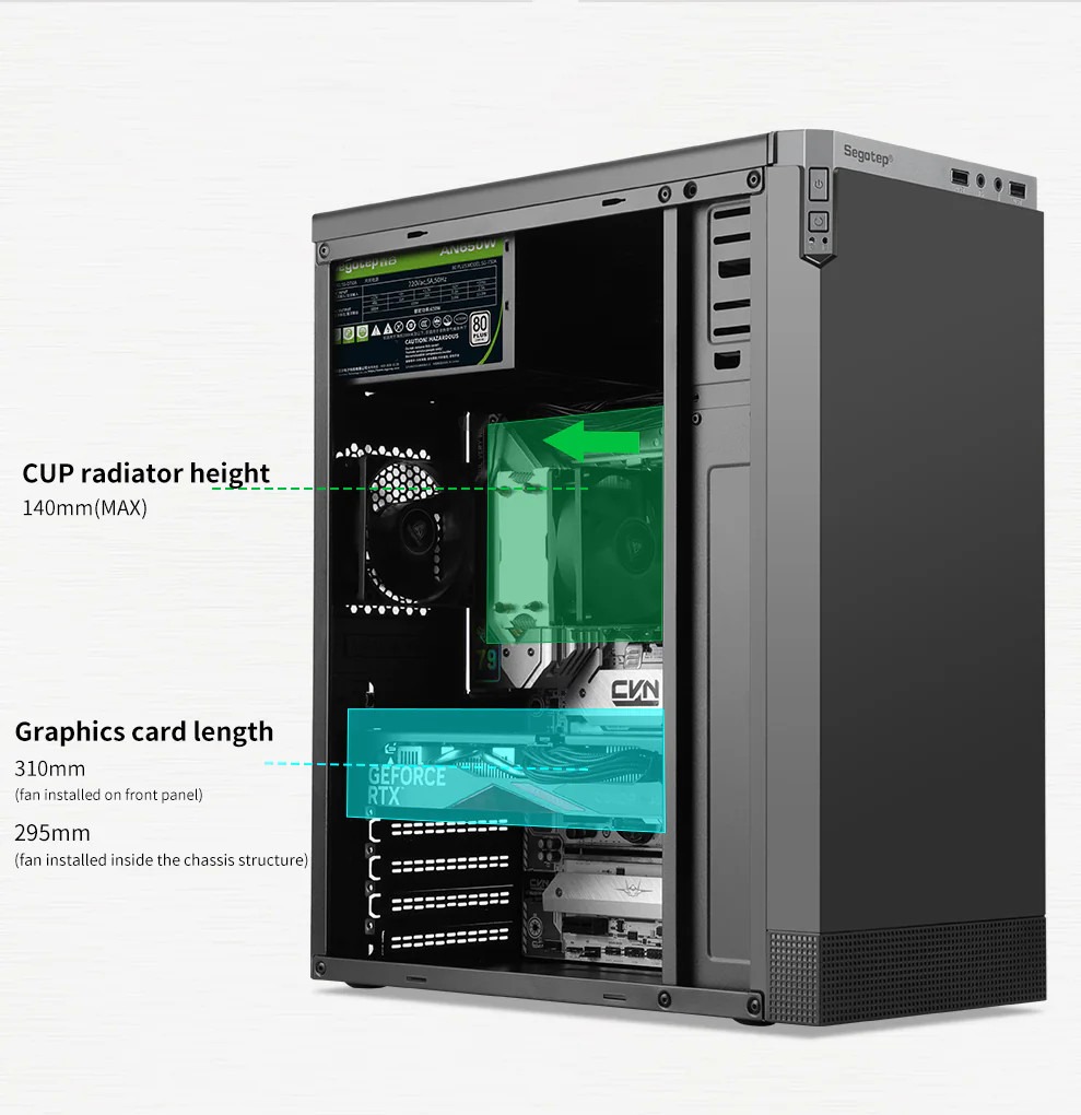- ✅ Max PSU Length: 140mm (fits standard power supplies)