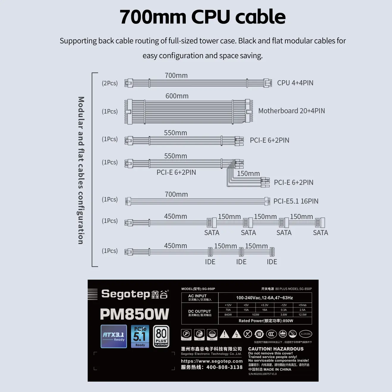 Segotep PM850W | 850W Fully Modular Power Supply | 80+ Platinum | ATX 3.1 | PCIe 5.1 Ready | AI Temp Control | Clean Aesthetic, Peak Efficiency | Black