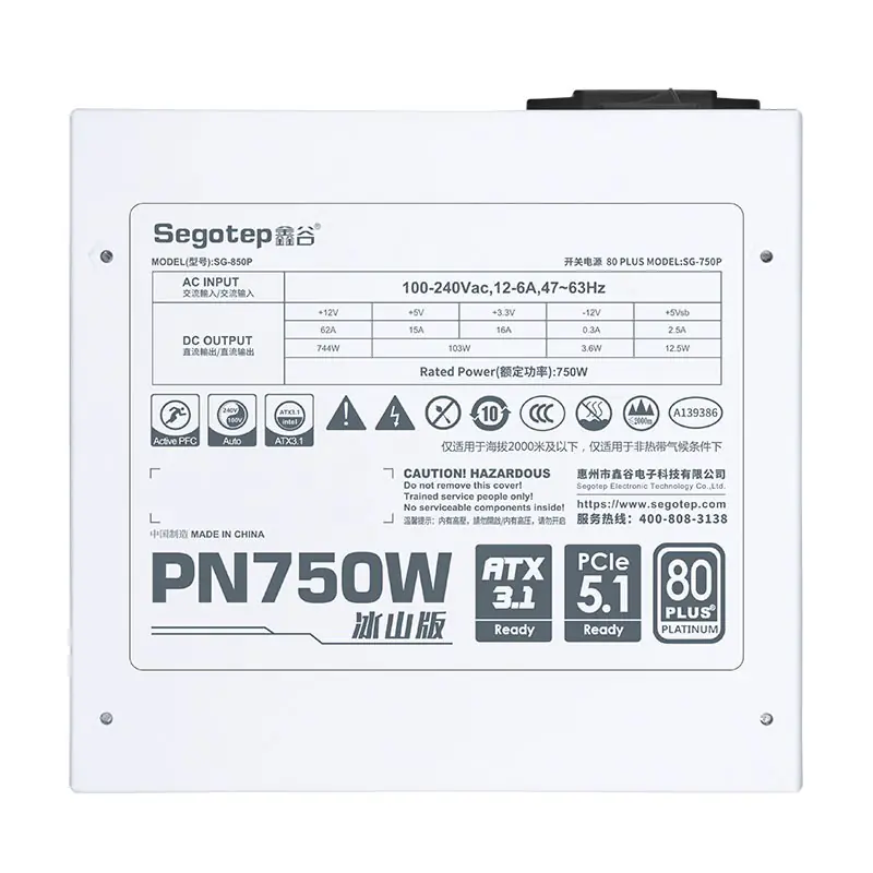 SEGOTEP PN750W 750W Power Supply – ATX 3.1, 80 PLUS Platinum Certified, Non-Modular, High-Efficiency PSU – White
