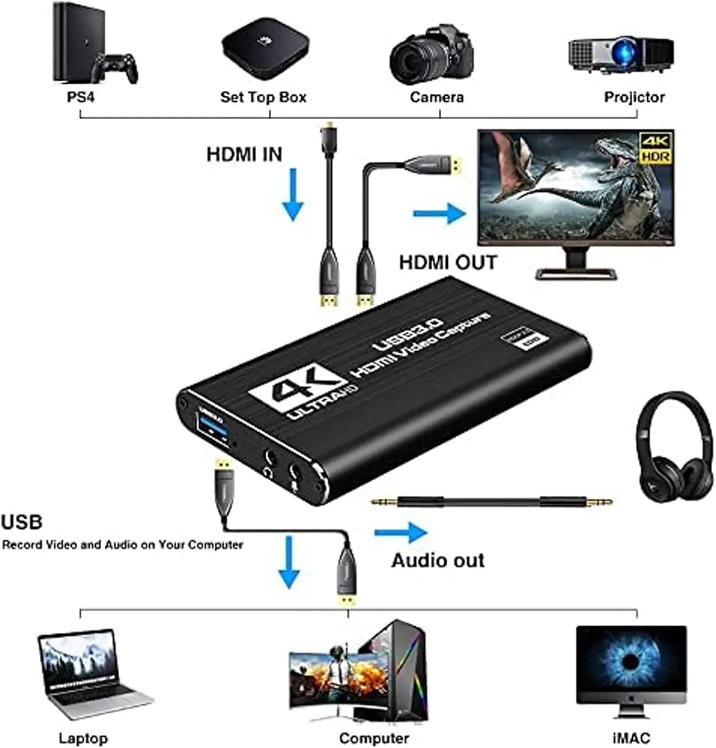 - 4K HDMI Input / 1080P USB3.0 Output – capture in full HD at 60fps with crisp 4K passthrough.