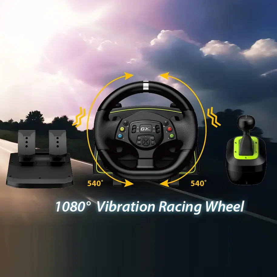 - 1080° Rotation Racing Wheel for precise, realistic control in racing games.