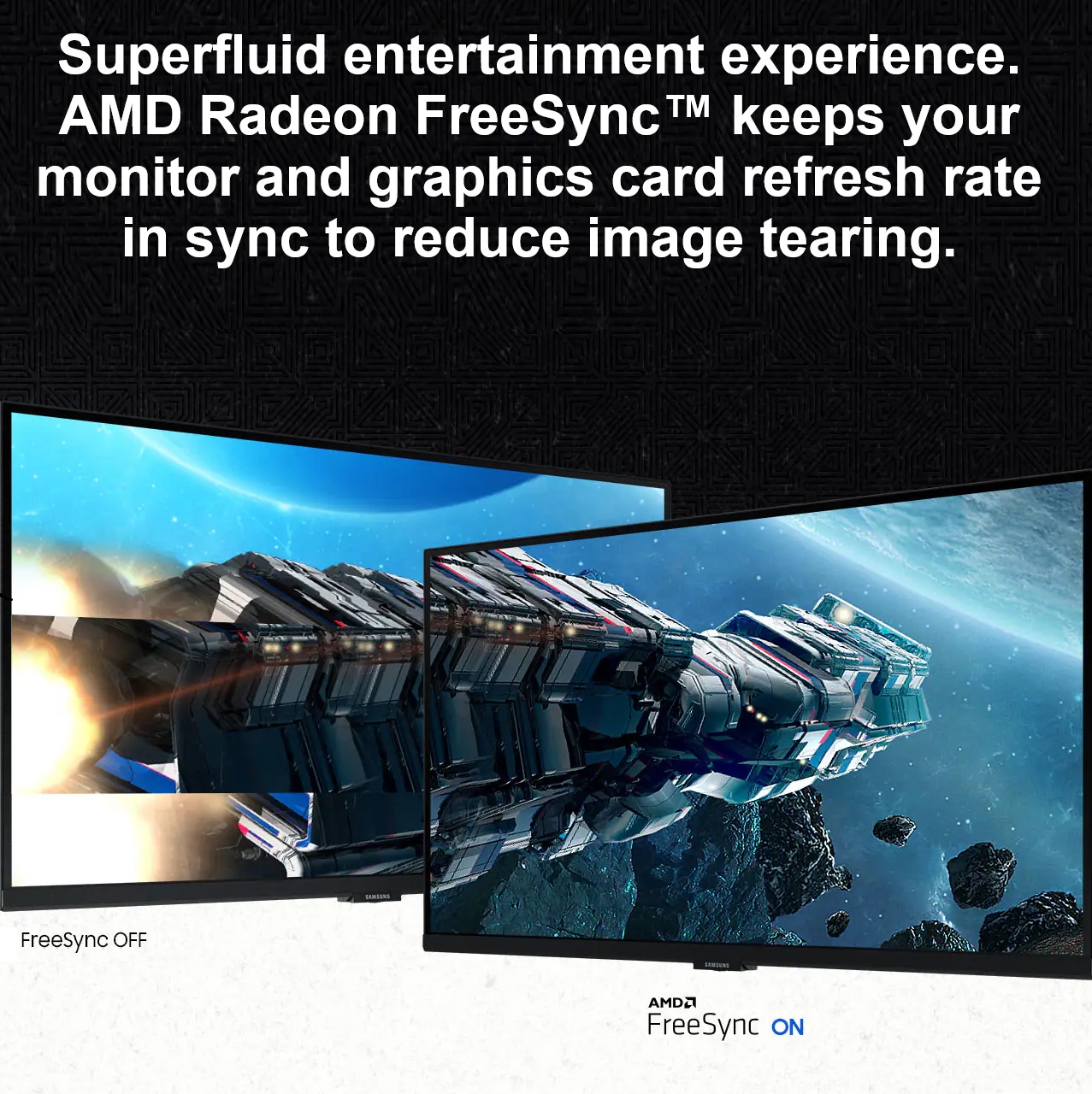 - AMD FreeSync: Superfluid entertainment experience. AMD Radeon FreeSync keeps your monitor and graphics card refresh rate in sync to reduce image tearing. Watch movies and play games without interruptions. Even fast scenes look seamless and smooth.